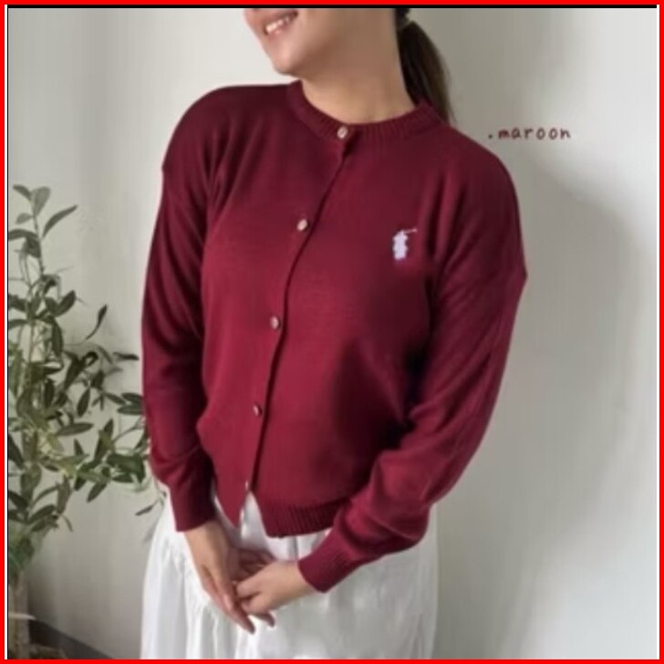 Nani Cardy Knit - Atasan Cardigan Rajut Kancing Polo Horse Motif Simple Bahan Lembut Korean Style