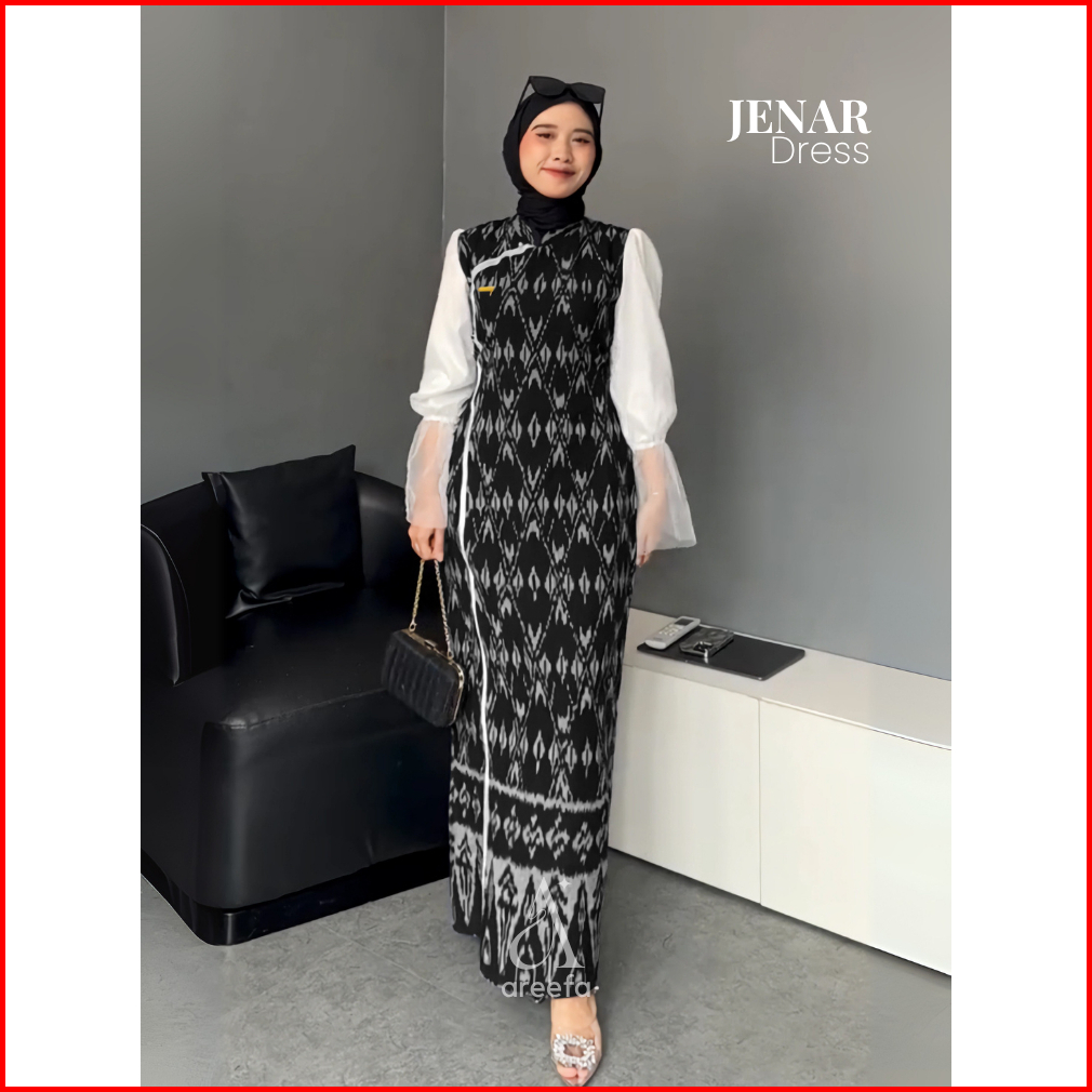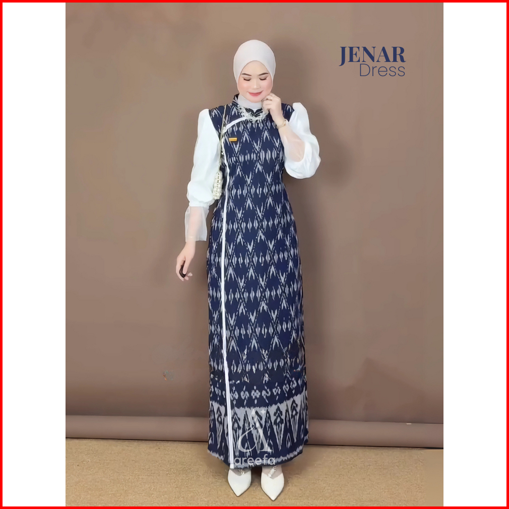 Areefa - Jenar Dress Gamis Tenun Etnik Kombinasi Satin Tile Premium Wanita Remaja Kondangan Mewah