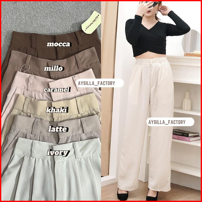 Aysilla Factory - Celana Loose Pants Trousers Wanita Kantor High Waist Pants
