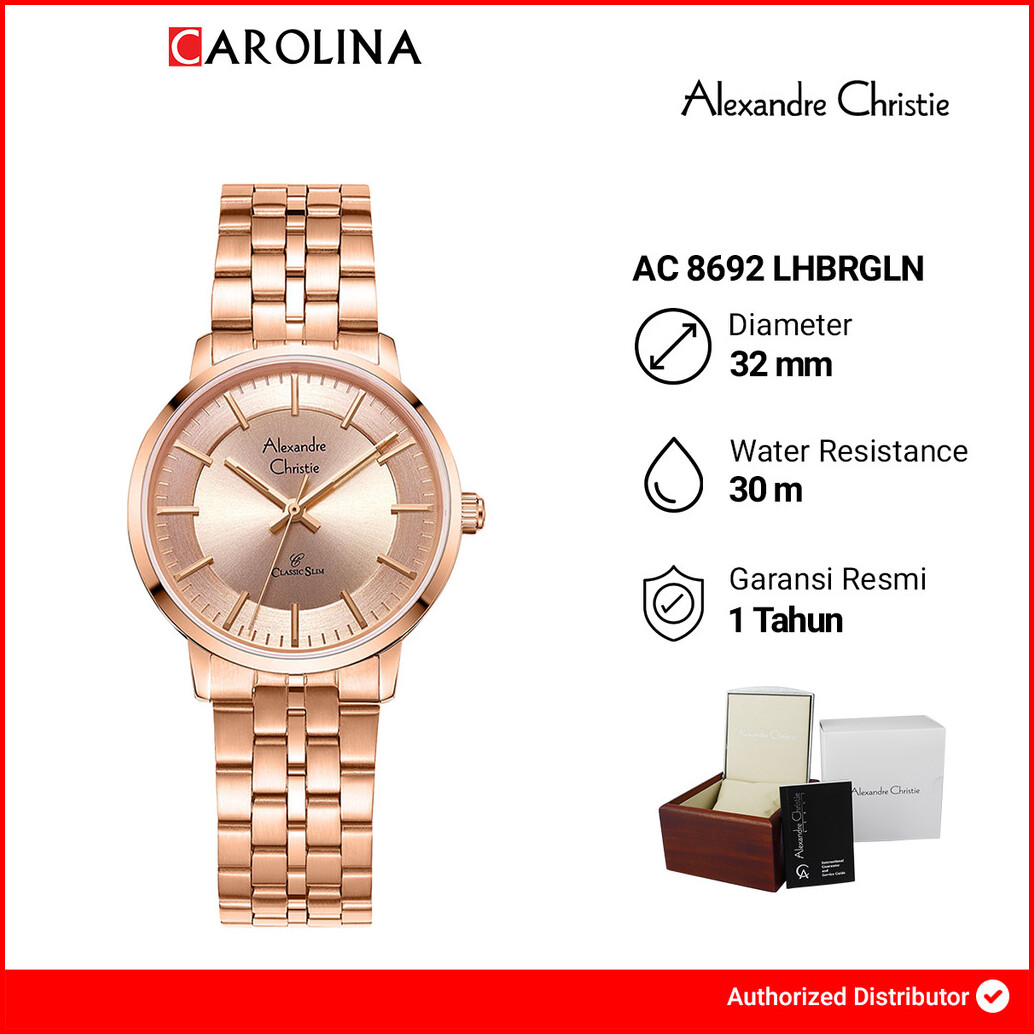 Jam Tangan Wanita Alexandre Christie Classic Slim Ac 8692 Lhbrgln Rose Dial Rose Stainless Steel Strap