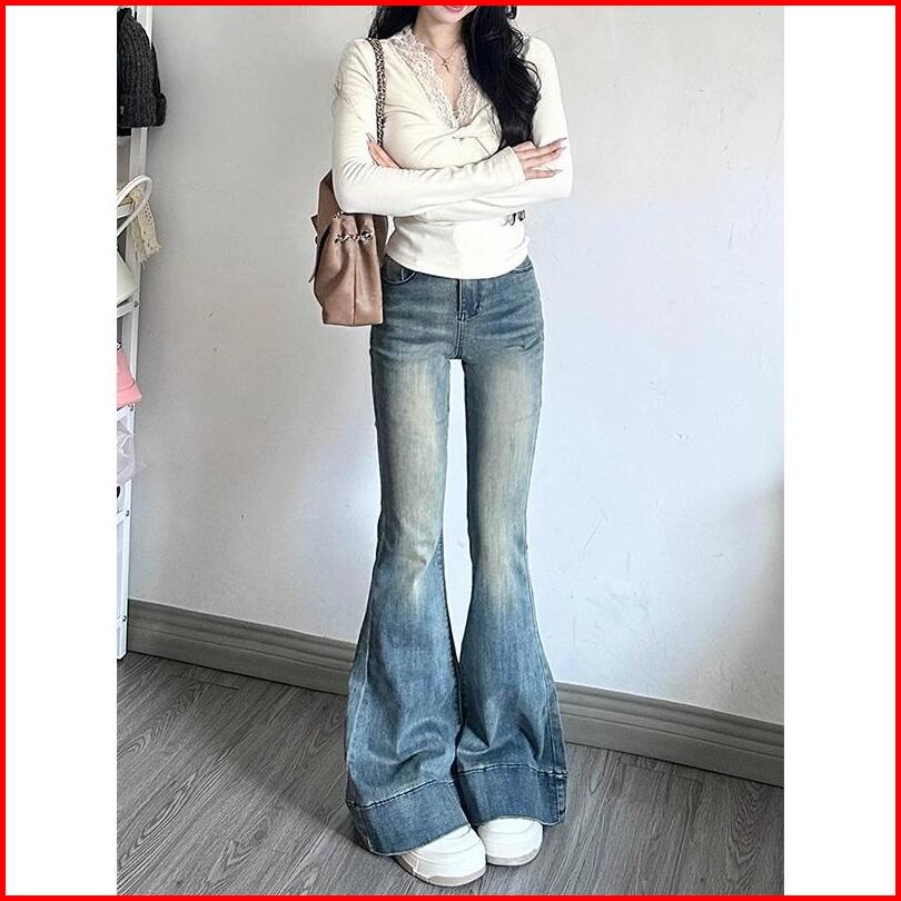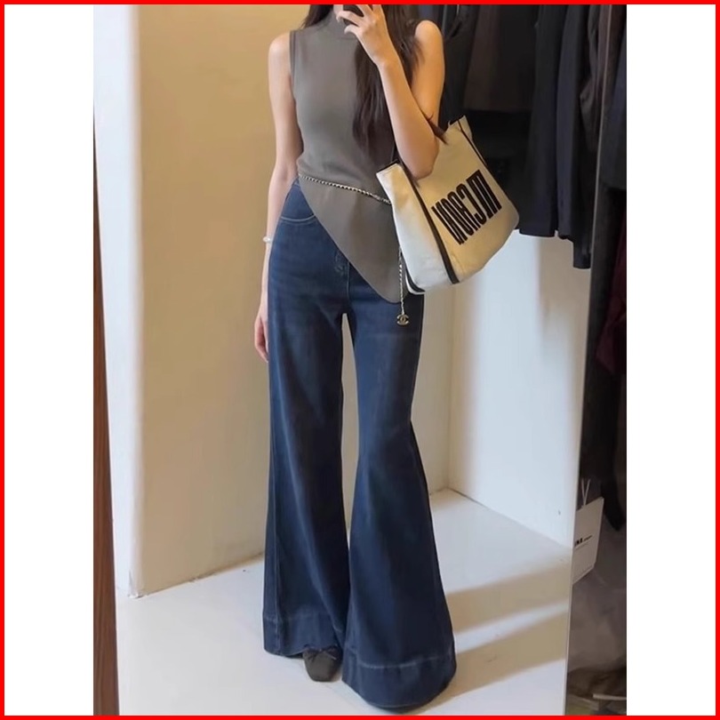 Lulu-jeans Highwaist Celana Cutbray Jeans Wanita Biru Tua Import--denim Melar Panjang