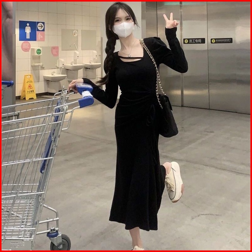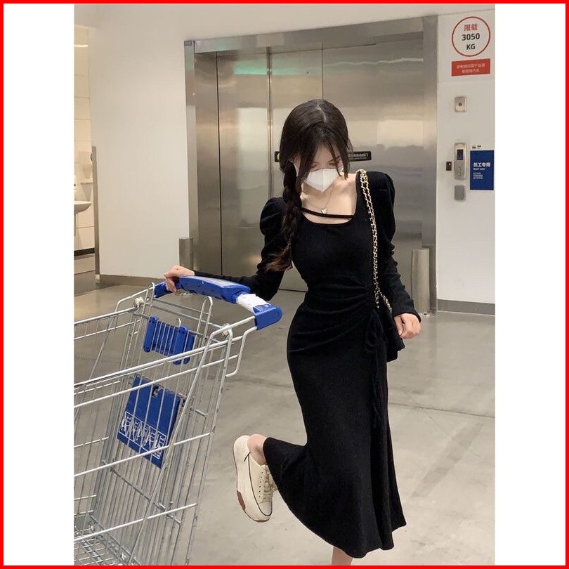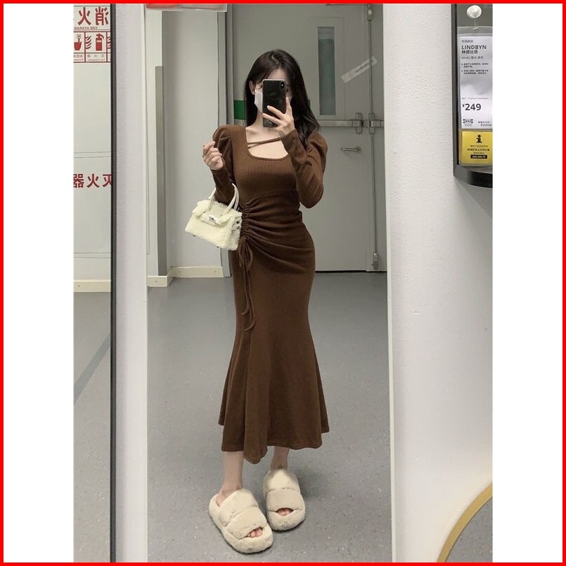 Gaun Wanita Polos Rajut Slimming Dress Lebaran Dress Serut Samping Panjang- G009