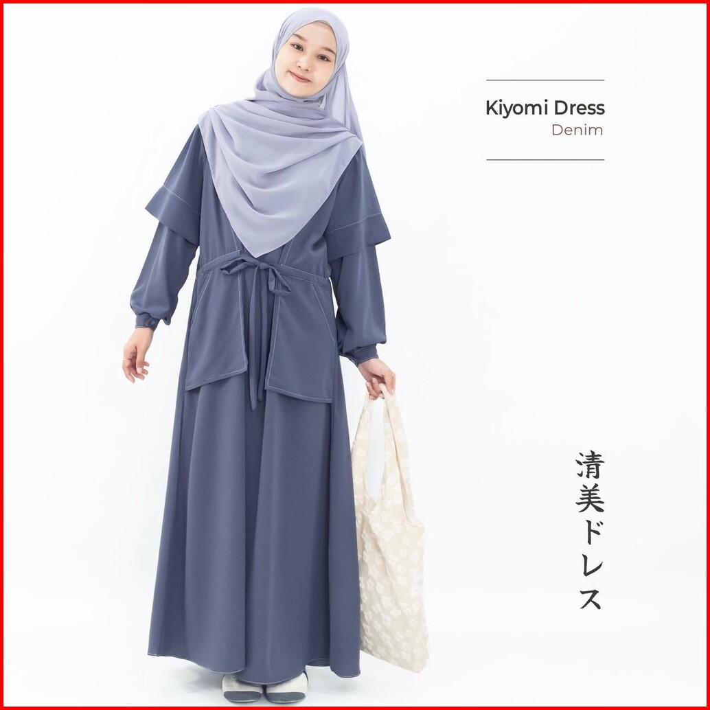 Mininos Kiyomi Dress Gamis Pocket Daily Serut Wanita Muslimah