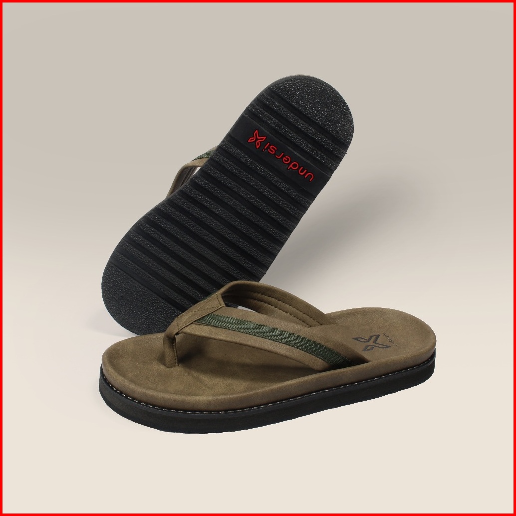 Undersix - Adr 539 Sandal Jepit Pria Kasual Warna Army Tinggi 2 Cm