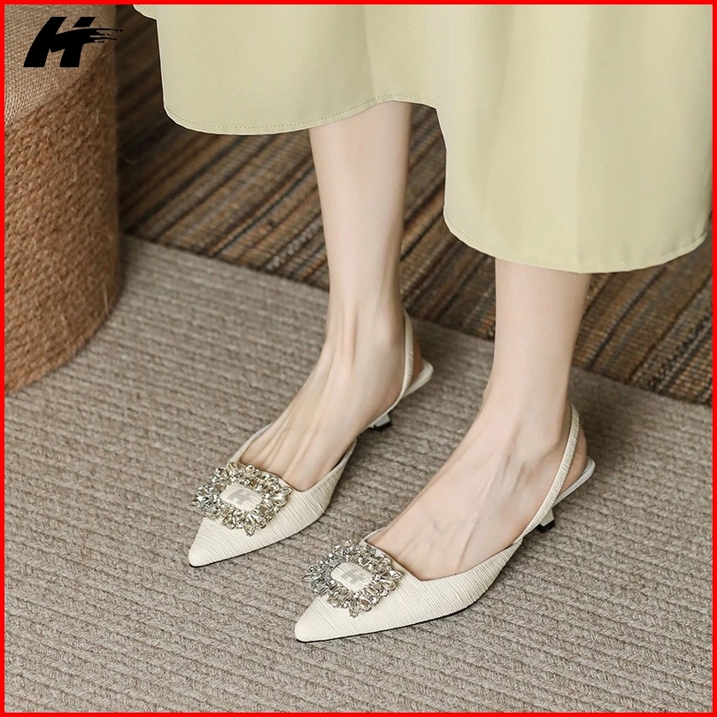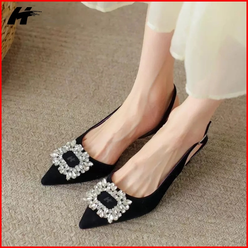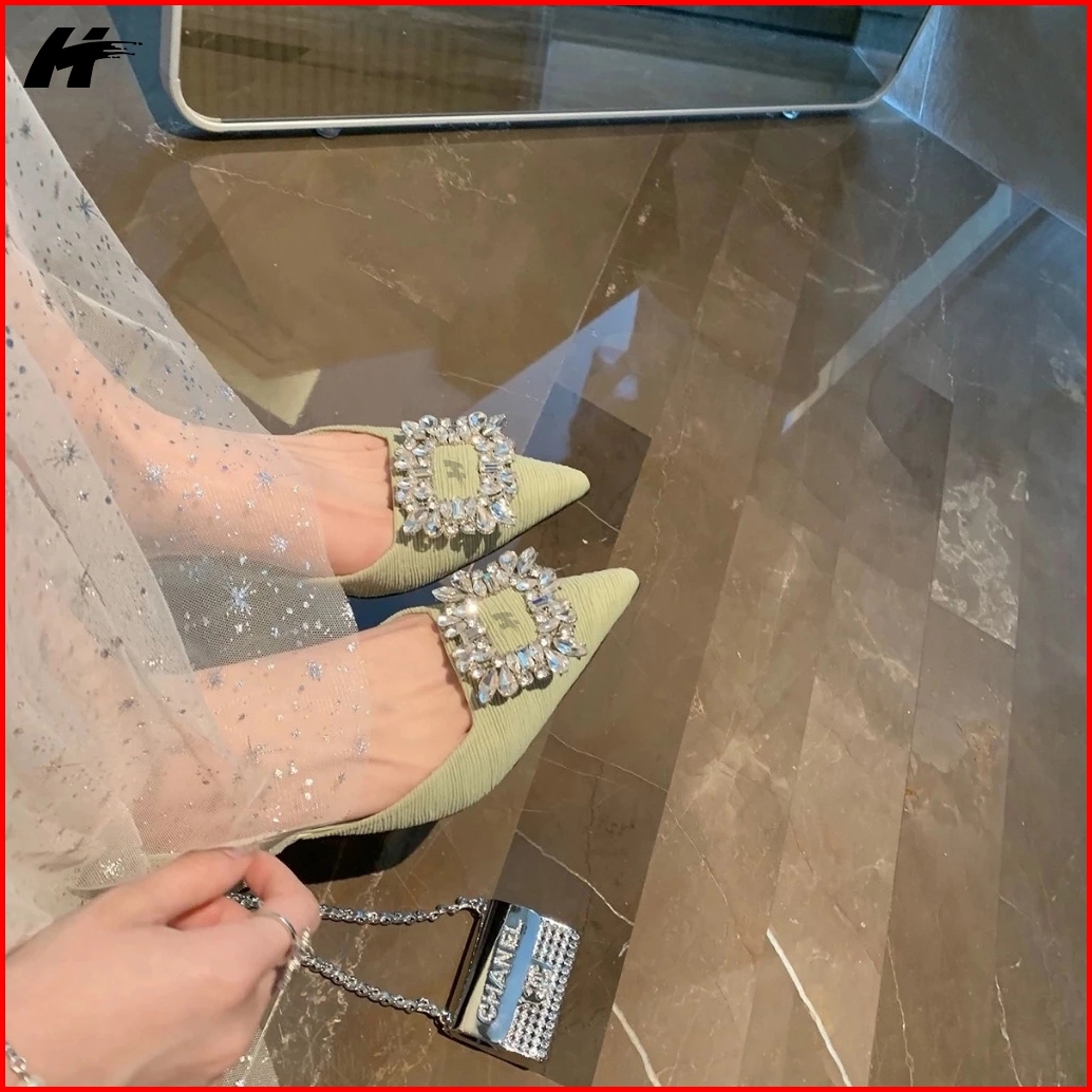 Ht 4cm Sandal Sepatu Pesta Wanita Heels Mode Korea Sandal Hak Tinggi Berujung Runcing Kristal