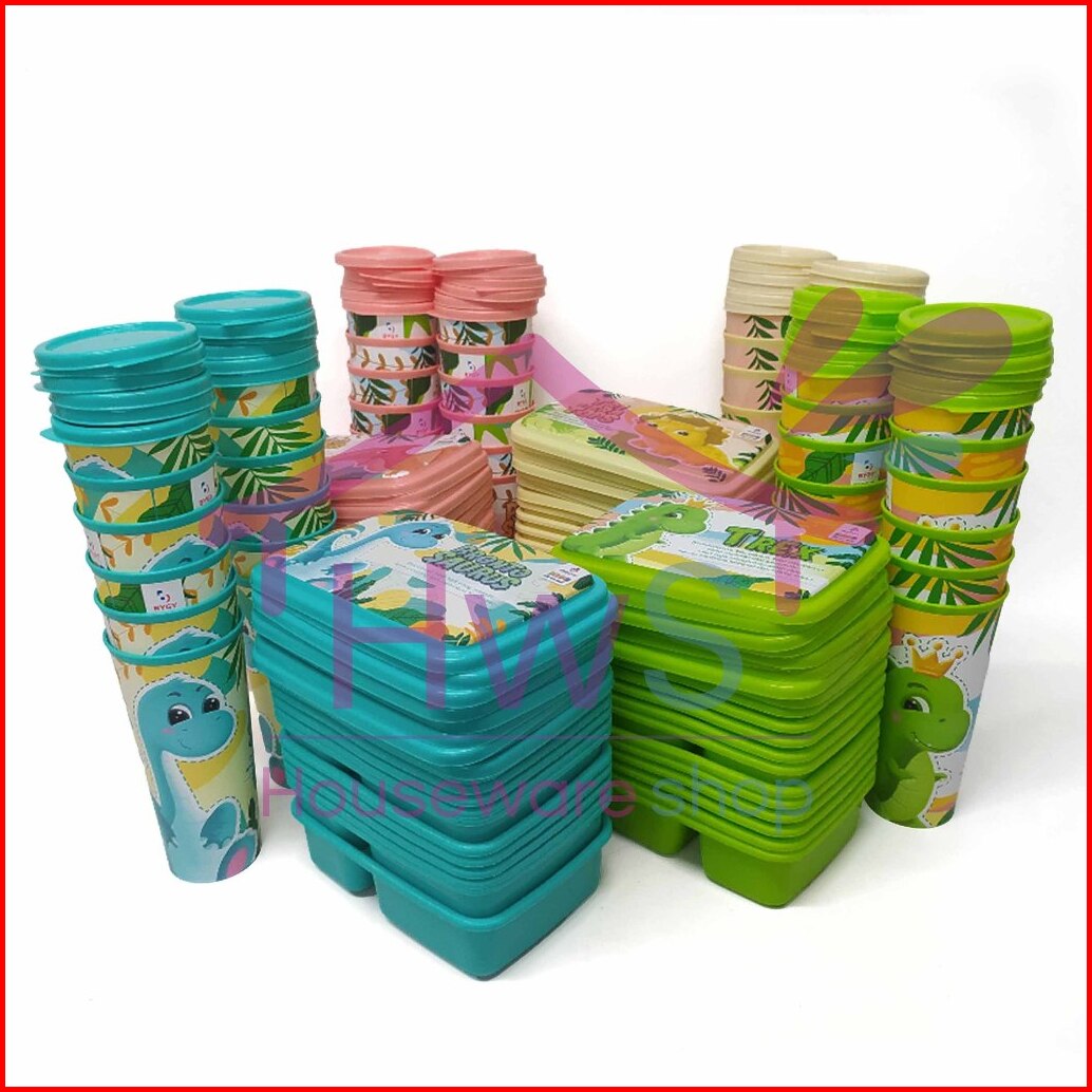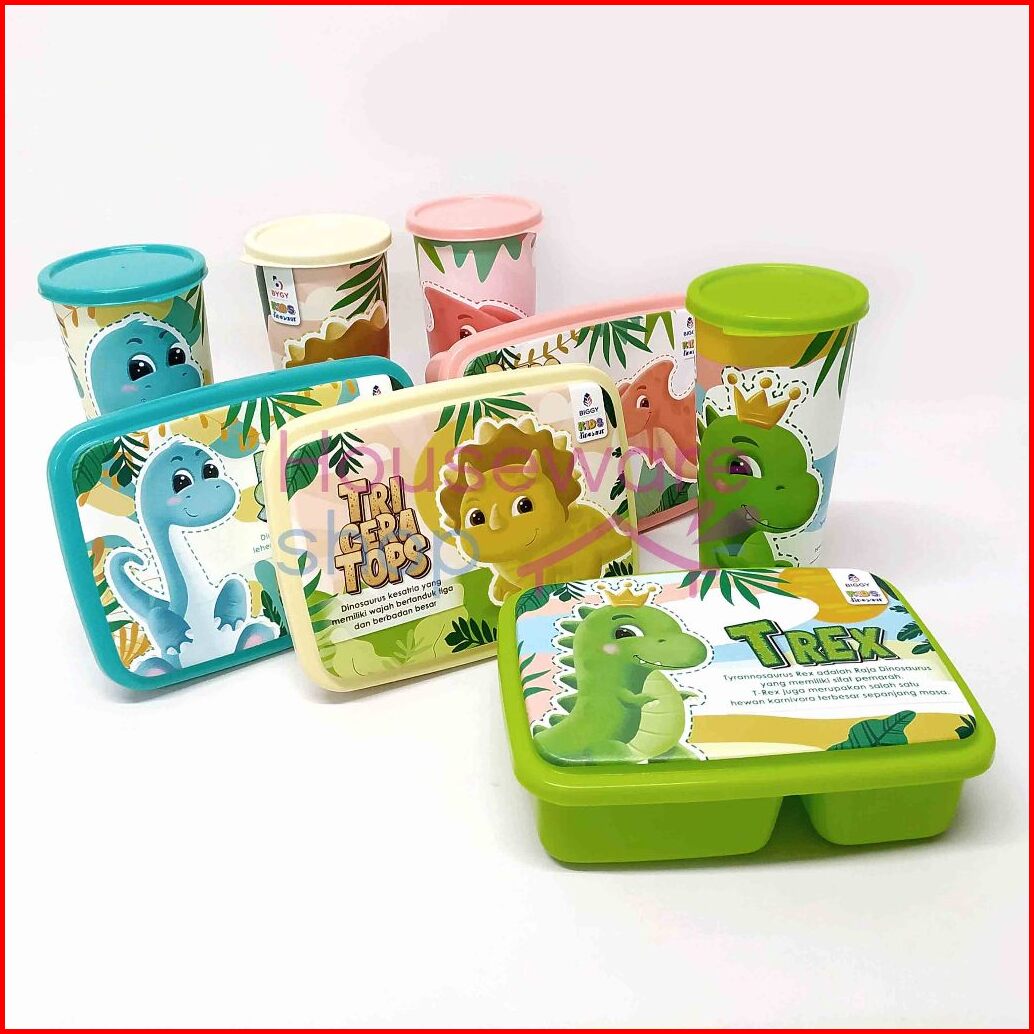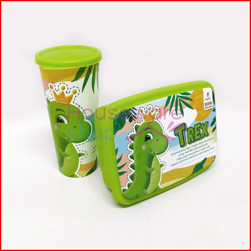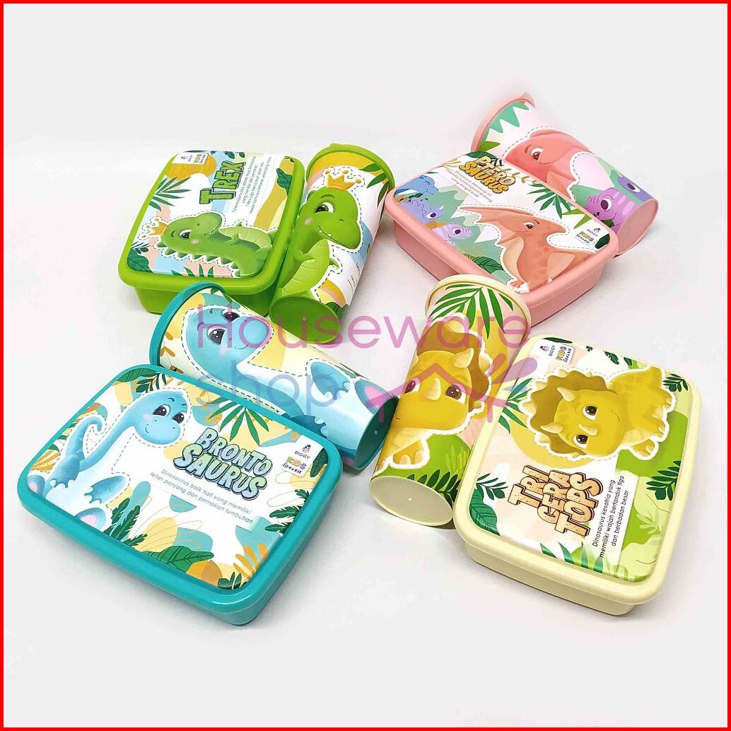 Bundling Set 12 Pcs Lunch Box Gelas Tutup Dinosaurus - Tempat Bekal Tempat Minum Dino - Souvenir Ulang Tahun