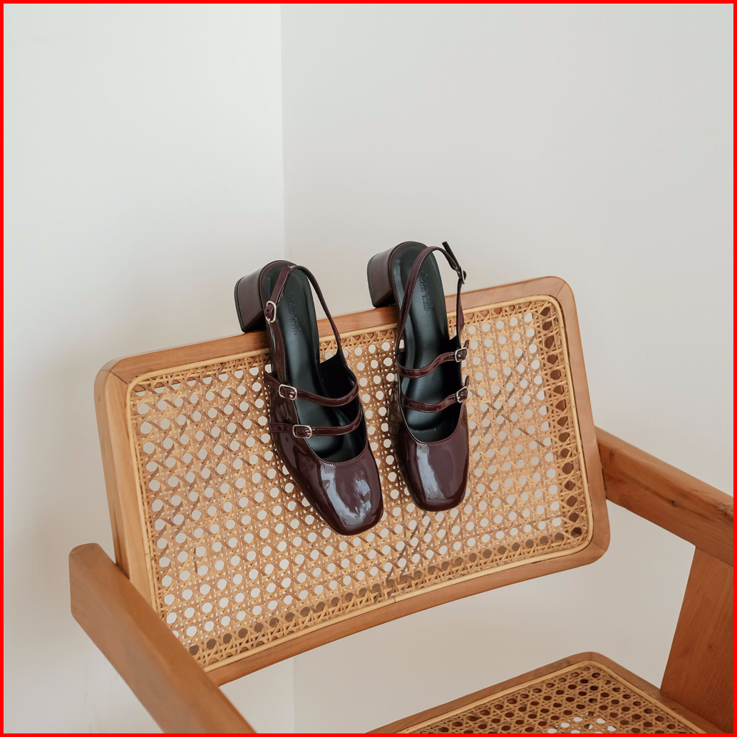 Dear Sole Sophia Mary Jane Heels 5cm Ivory Maroon Black