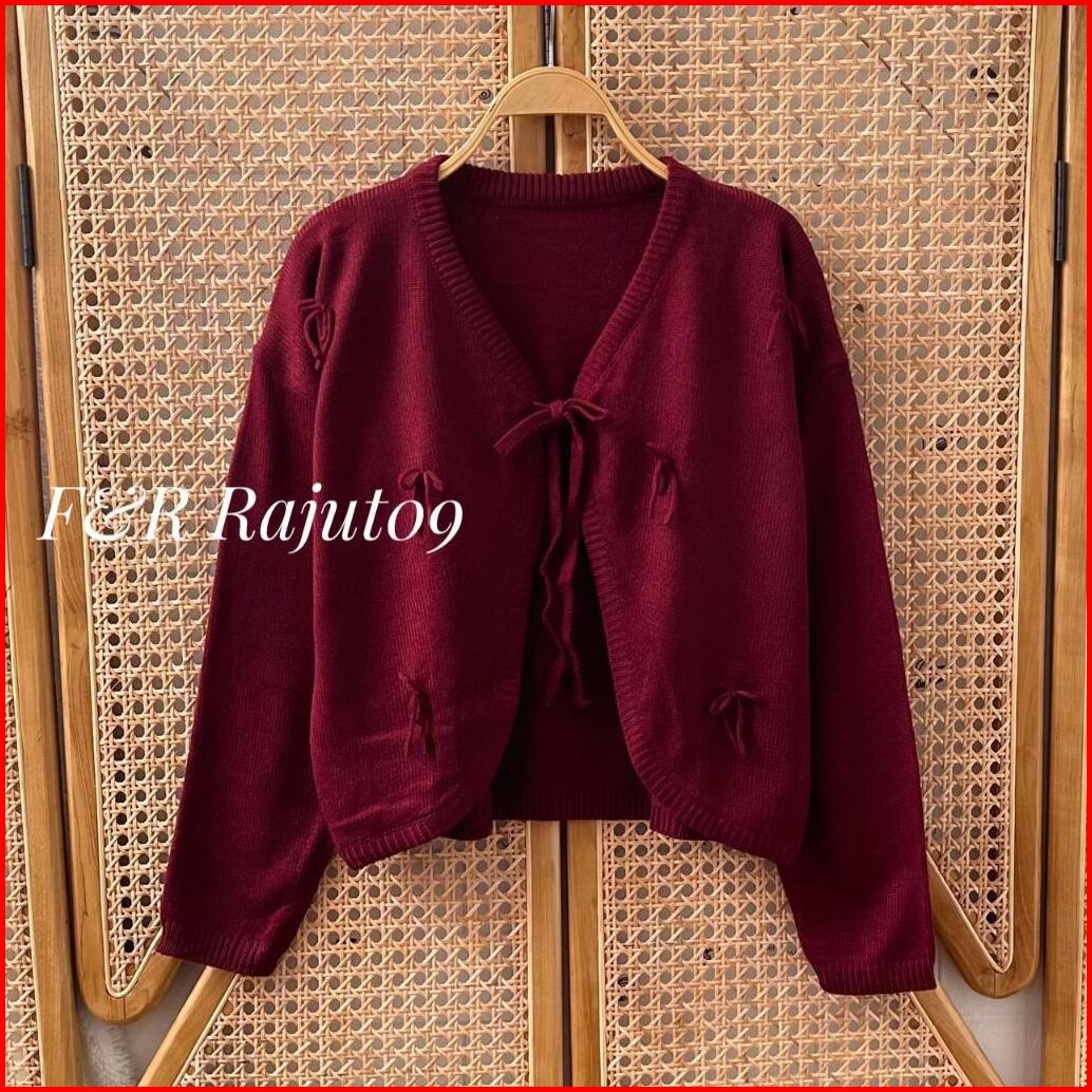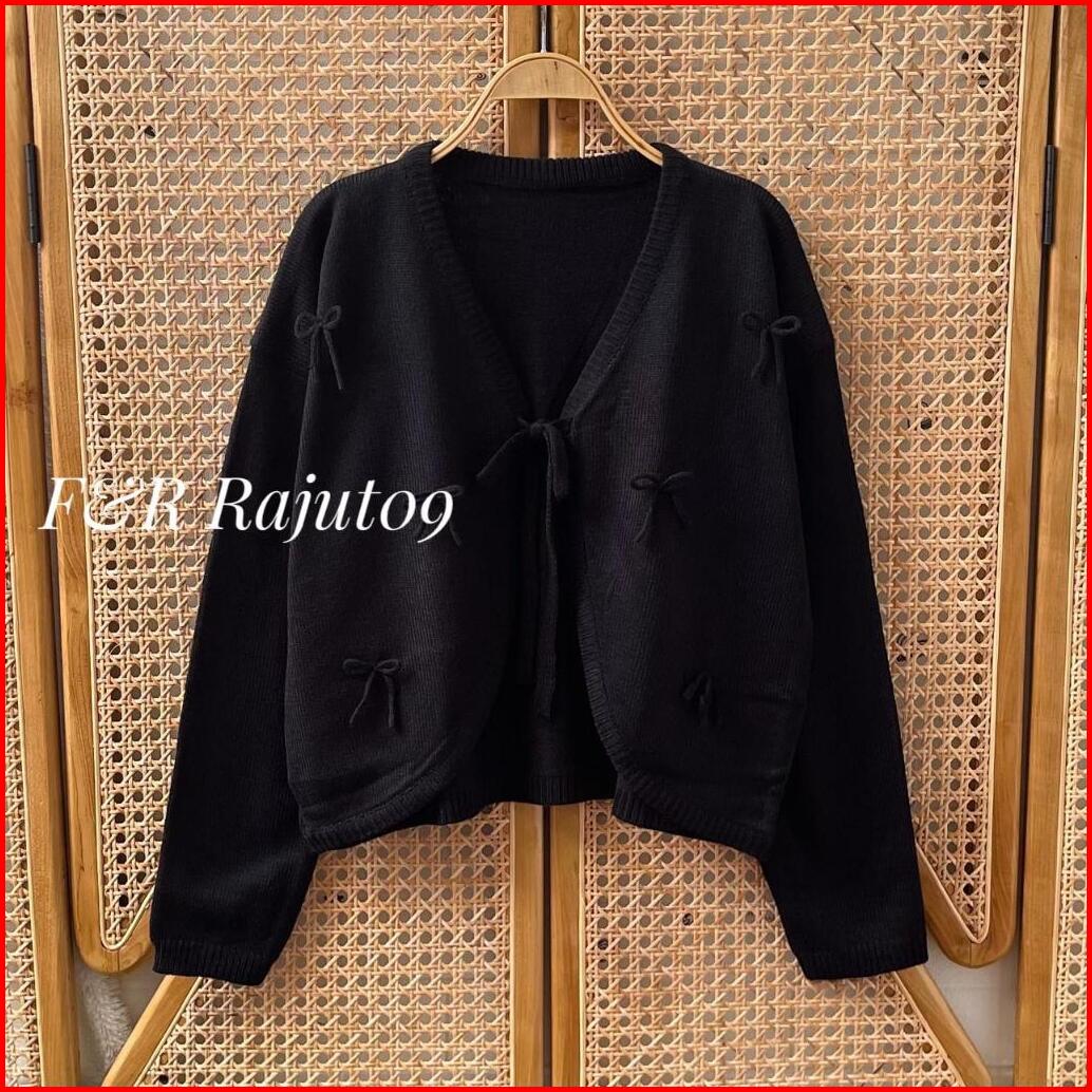 F R Eliza Outfit Cardigan Crop Motif Tali Pita Atasan Rajut Wanita Outer Simple Premium Terbaru Korean Style