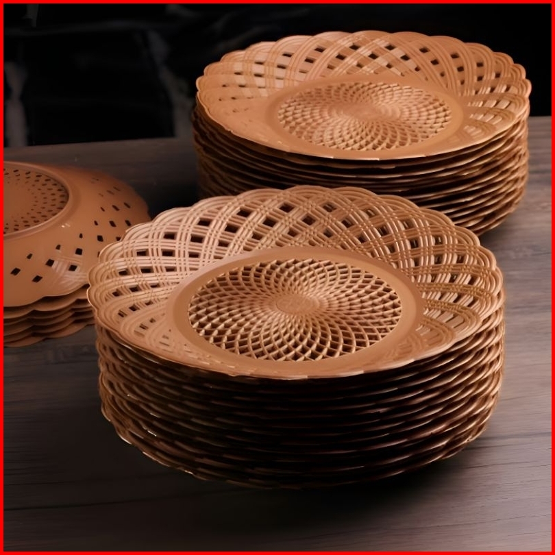 Promo Murah 3 Lusin Piring Rotan Plastik Diameter 24 Cm Isi 36 Pcs