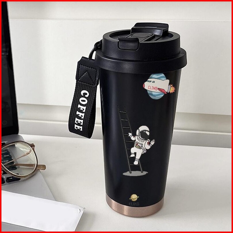 Tumbler Cup 500 Ml Anime Kartun Cartoon Lunar Astronauts Termos Kopi Custom Stainless Steel Dengan Sedotan Termos Kopi Y