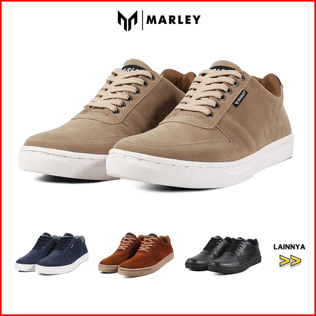 Marley Connor 06 - Marley Sepatu Sneakers Pria Casual Kerja Kantor Warna Hitam Kulit Sintetis