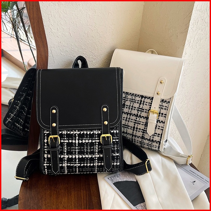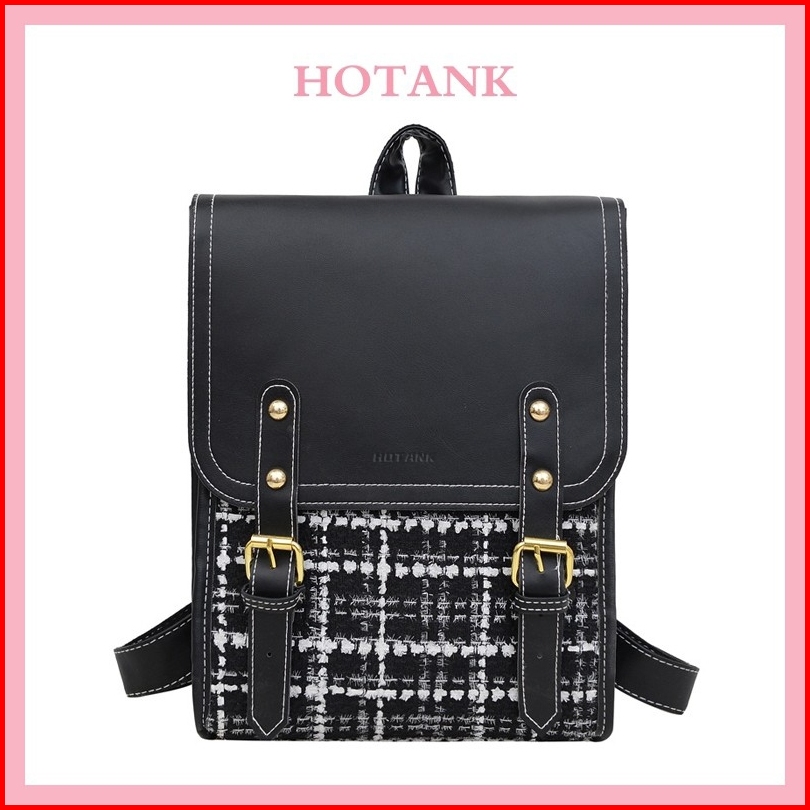Hotank Kotak-kotak Hit Warna Tas Bahu Wanita Tas Sekolah Tas Sekolah Kasual Sederhana Mahasiswa Temperamen Fashion Tas W