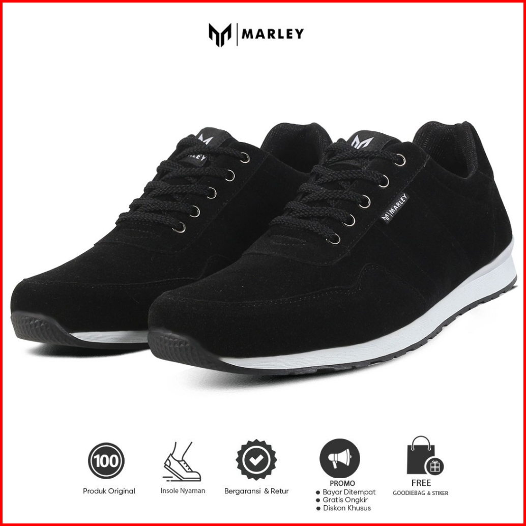 Marley Austin 08 - Marley Sepatu Sneakers Pria Casual Sport Semi Formal Warna Hitam Bahan Suede