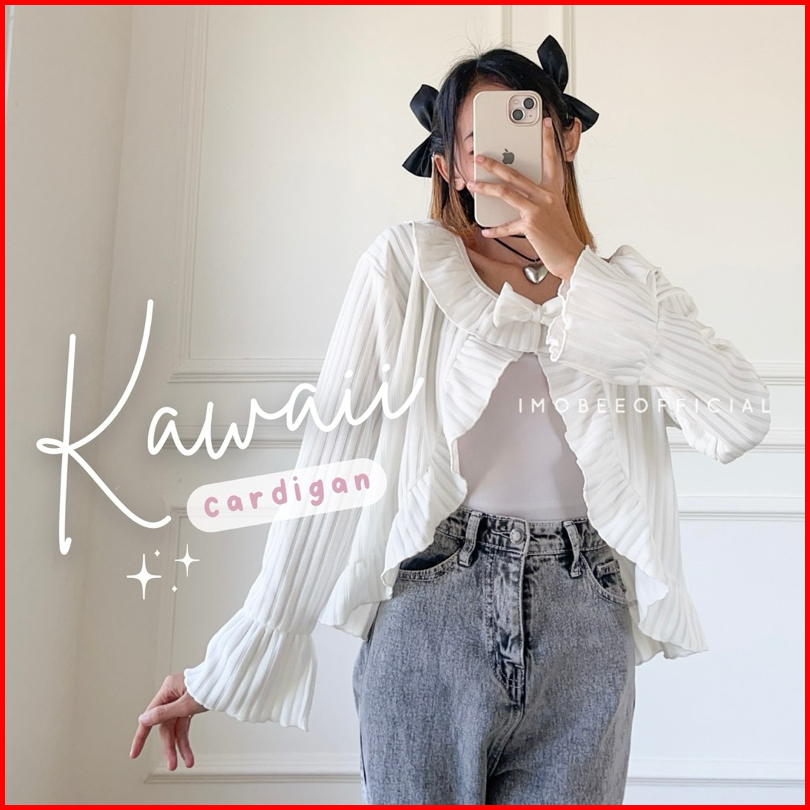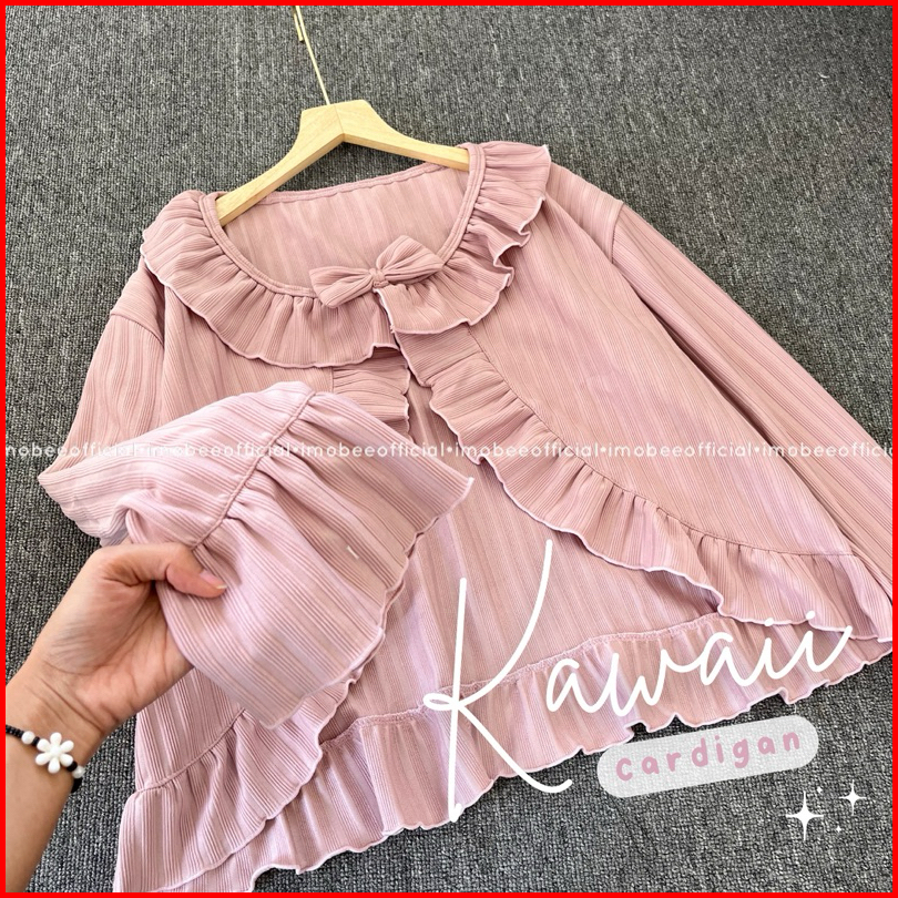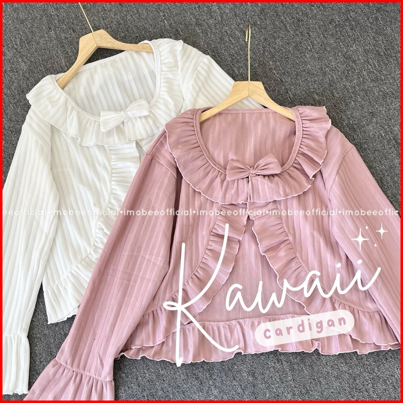 Kawai Ruffle Cardigan Pita Outer Kawai Ruffle Ribbon Knit Rempel Coquette Aesthetic