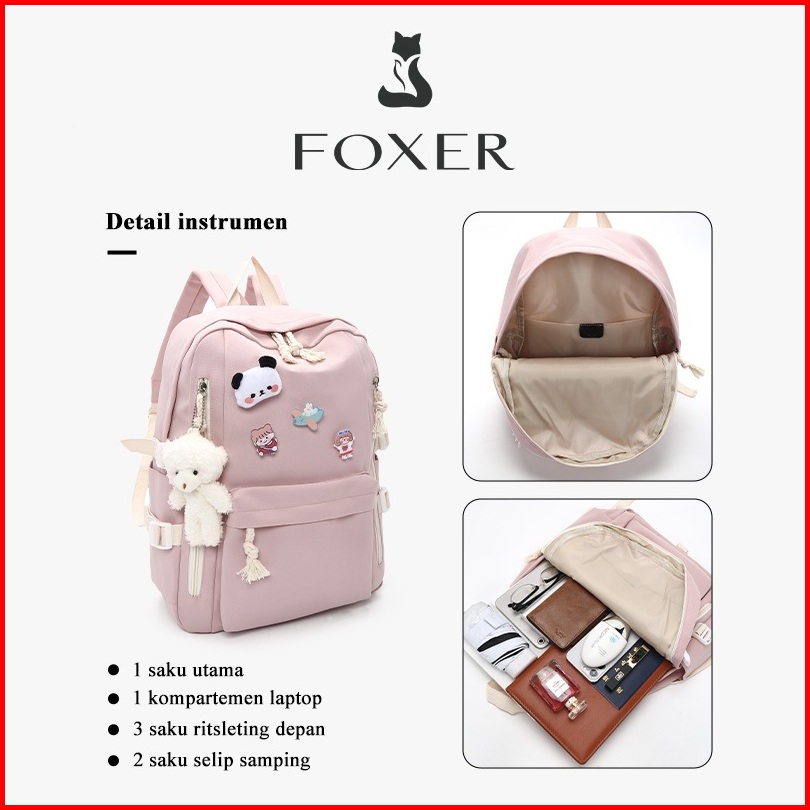 Foxer Tas Ransel Wanita Kapasitas Besar Tas Ransel Stylish Dan Imut Tas Laptop Kain