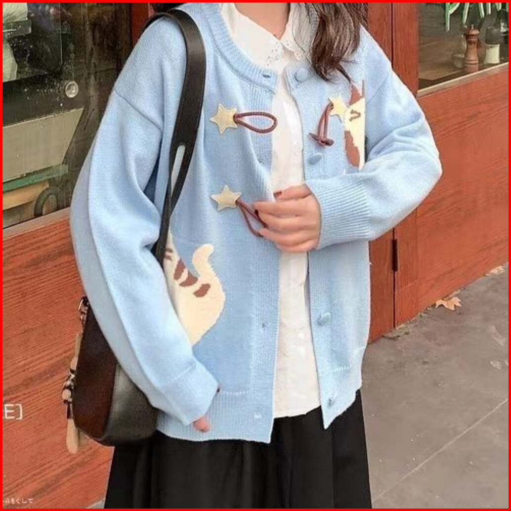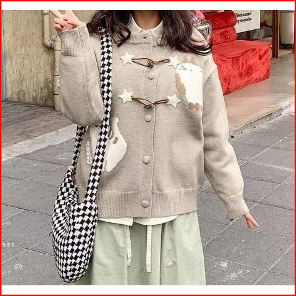 Animal Star Cardi Korean Cardigan Sweather Korea Sweater Wanita Bahan Rajut Premium
