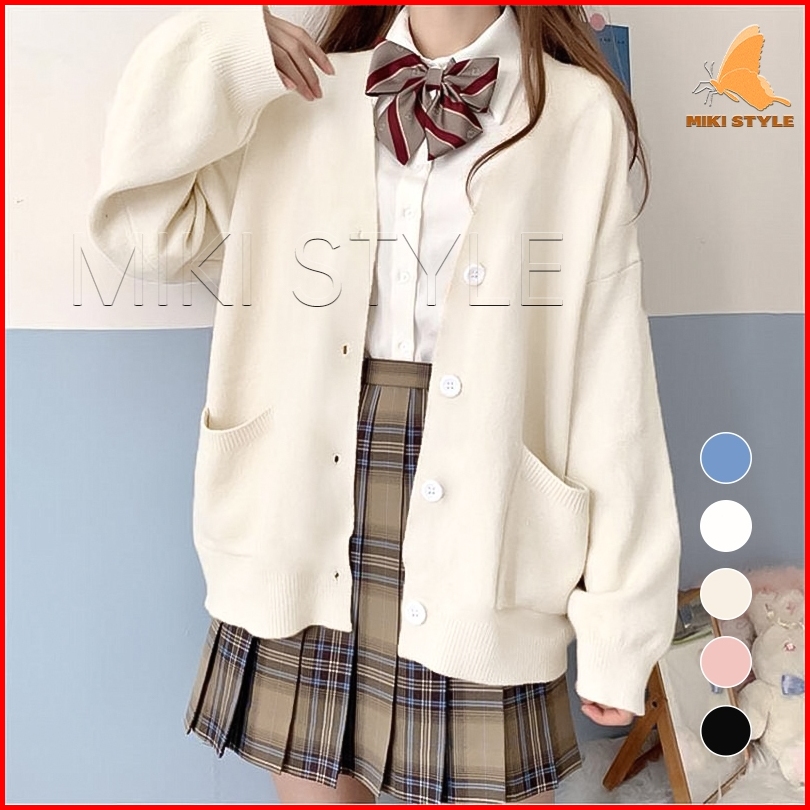Miki - Cardigan Rajutan Longgar Gaya Malas Gaya Kampus Lucu Gaya Korea