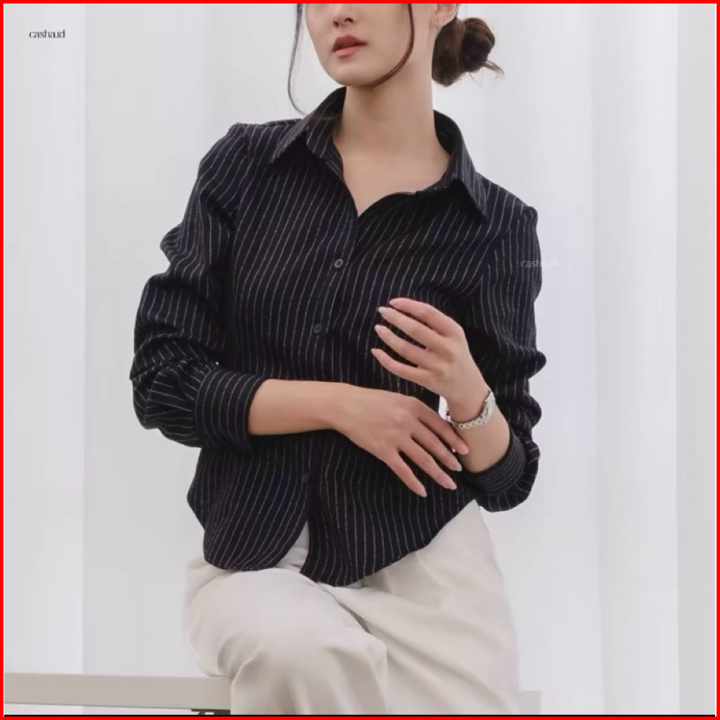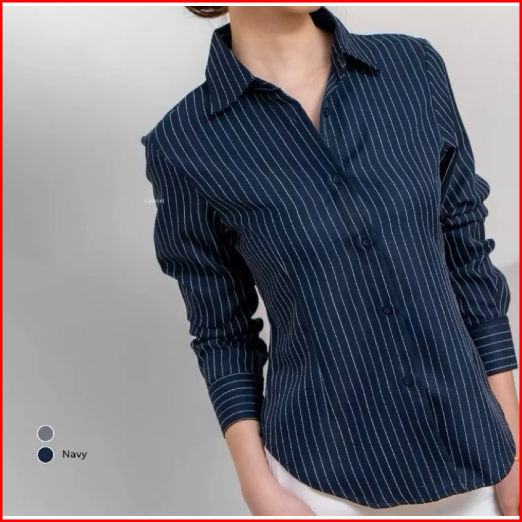 Jossellyn.co - Luna Stripe Kemeja Fitted - Kemeja Wanita Fitted Stripe Salur Basic Formal Casual -kemeja Pres Body Atasa