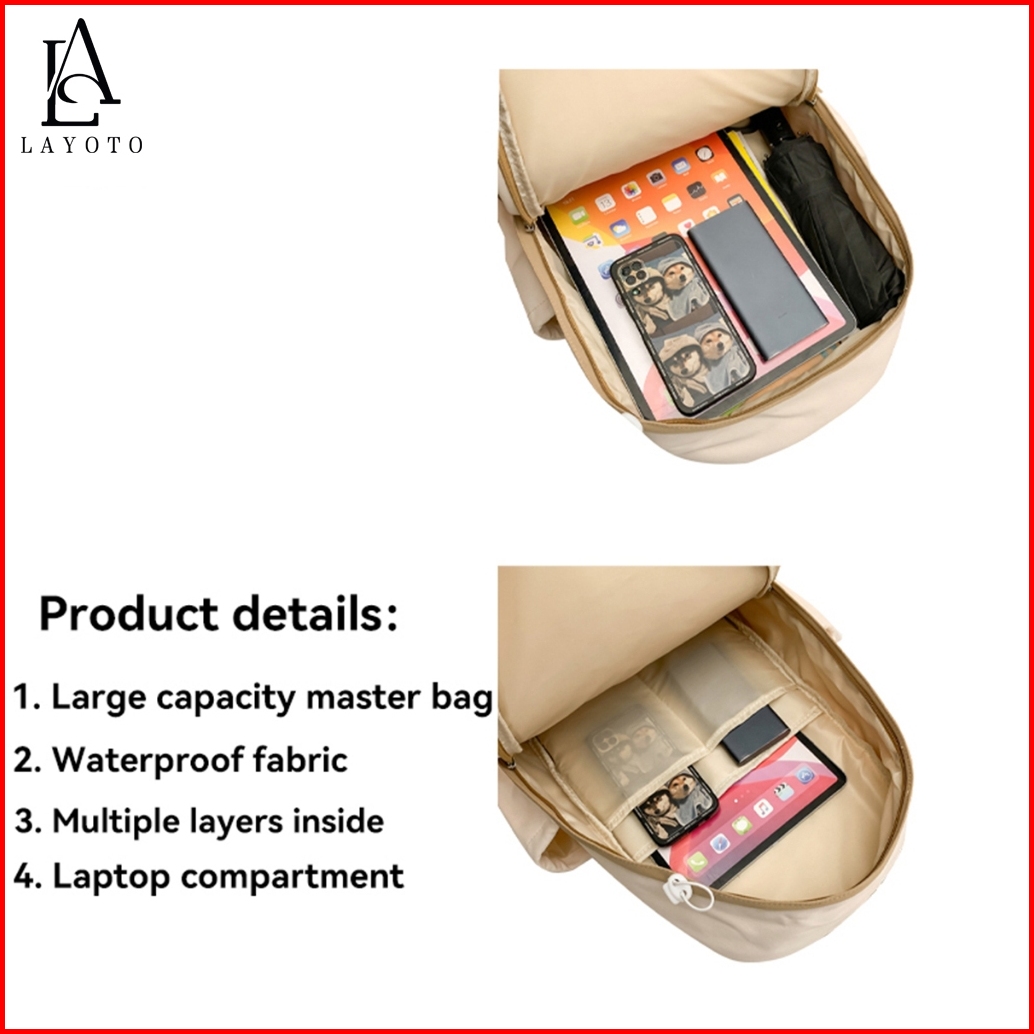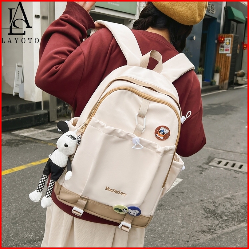 Layoto Tas Sekolah Korean Style Tas Ransel Kuliah Wanita Waterproof Tas Ransel Laptop Backpack