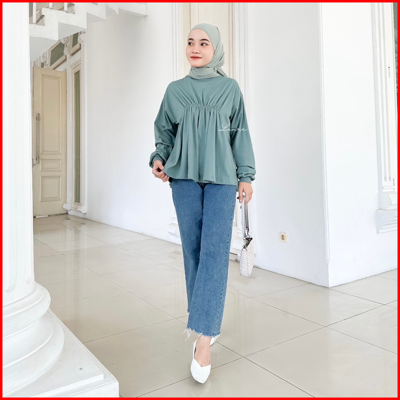 Summer Blouse Rempel Depan Busui Bahan Kaos Cotton Combed Atasan Model Korean Outfit