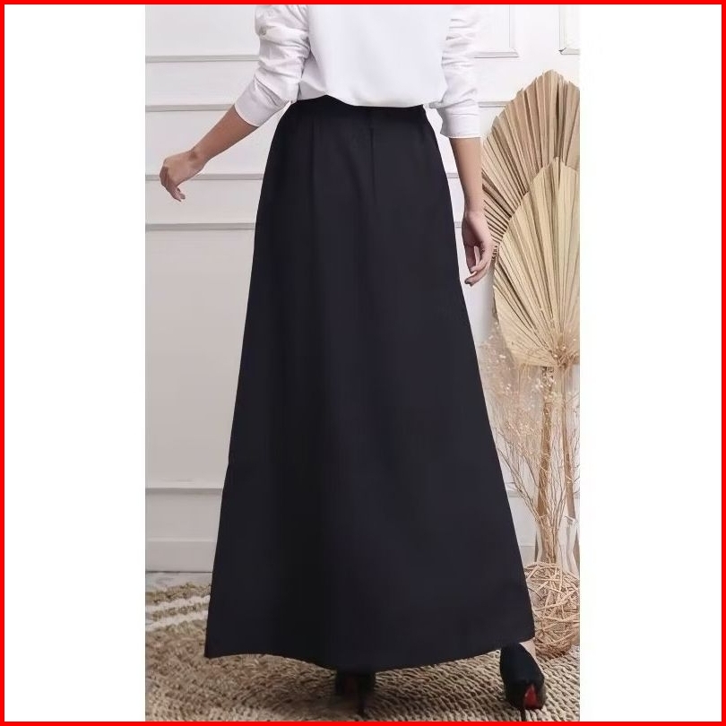 Rok A Line Kantor Hitam Panjang Wanita S-xxl