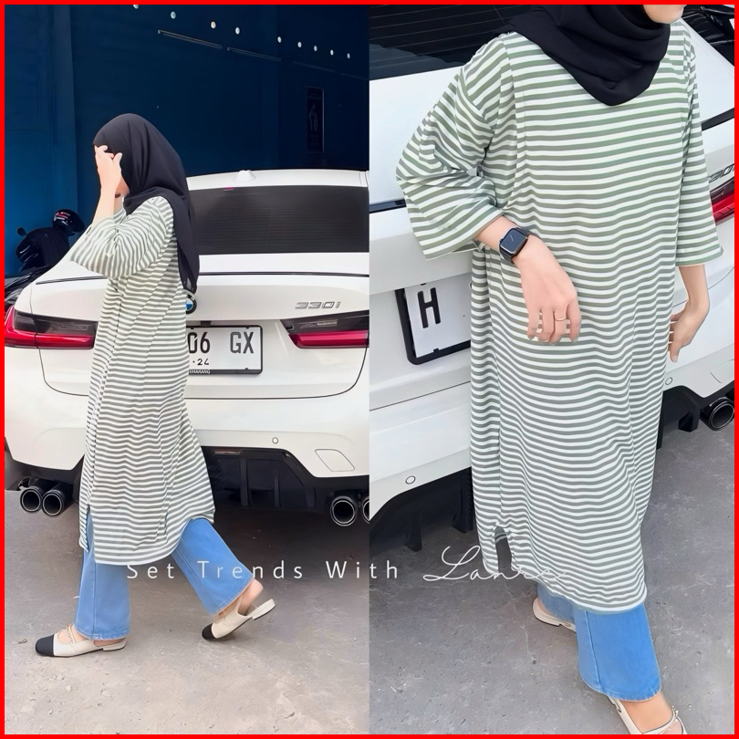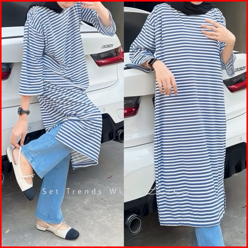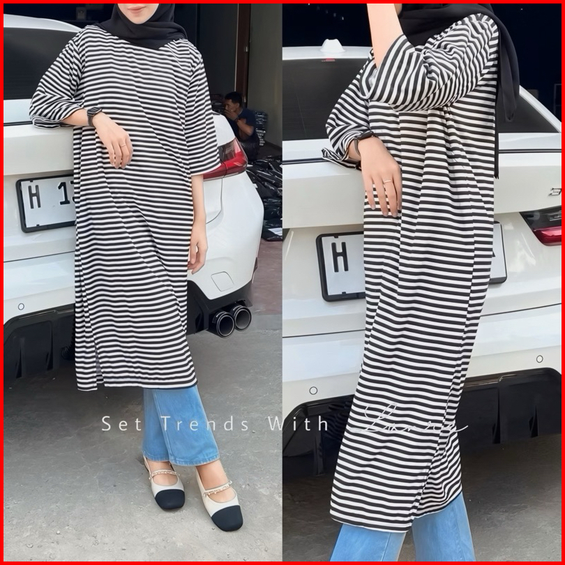 Morfia Tunik Motif Strip By Lanre Atasan Oversize Jumbo