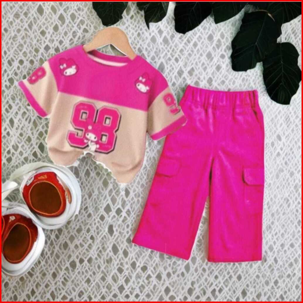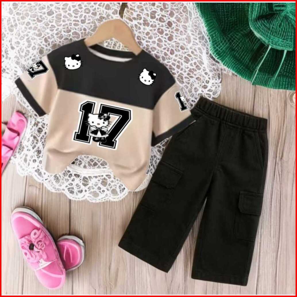 Setealan Anak Perempua Terbaru Model Kargo 2-12 Thn Baju Anak Cewk One Set Terviral