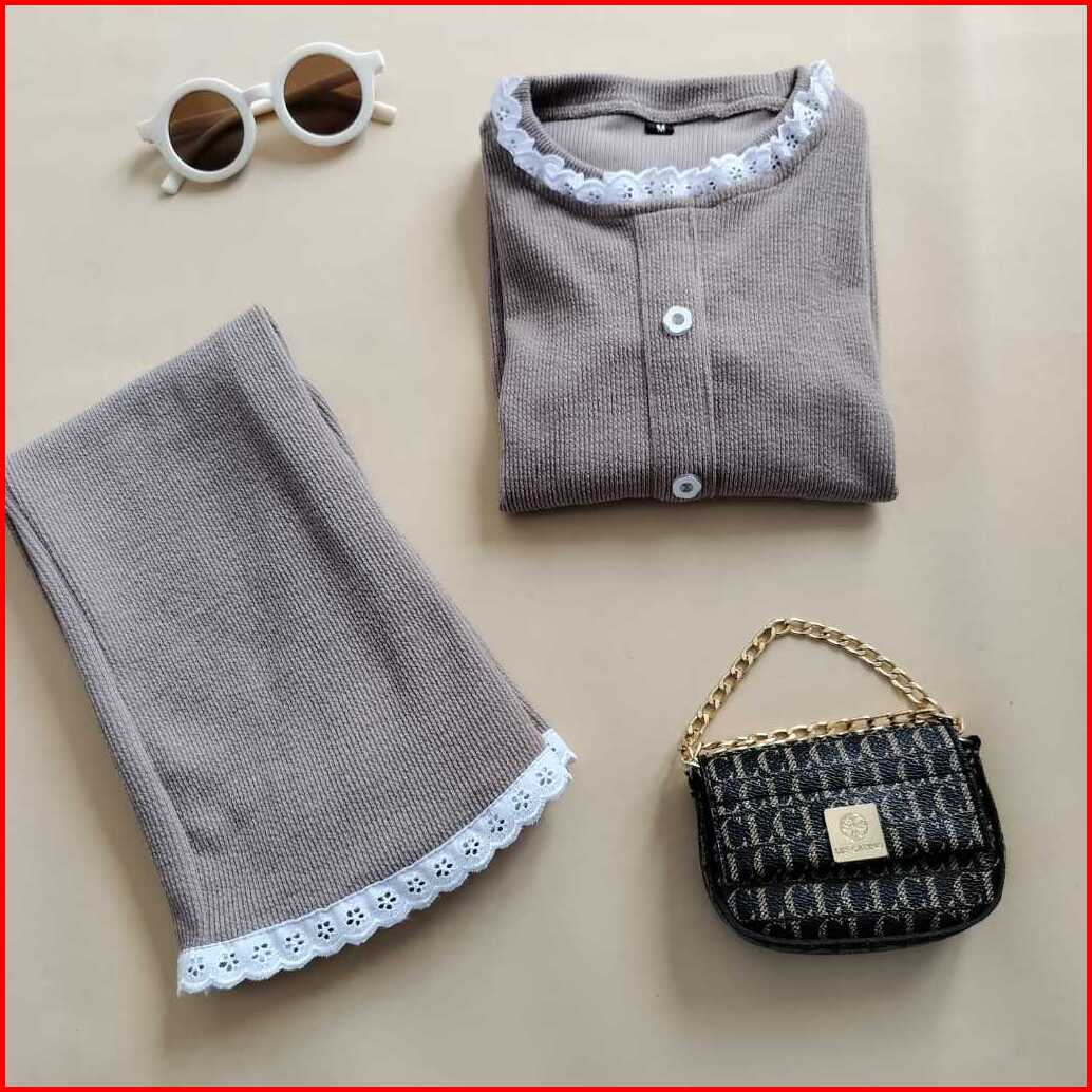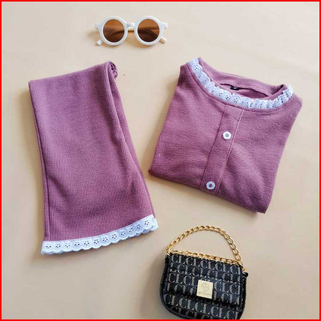Paket Bundling One Set Jennie Top Flare With Lace - Fashion One Set Anak Perempuan Usia 2-12 Tahun Bahan Knit Premium