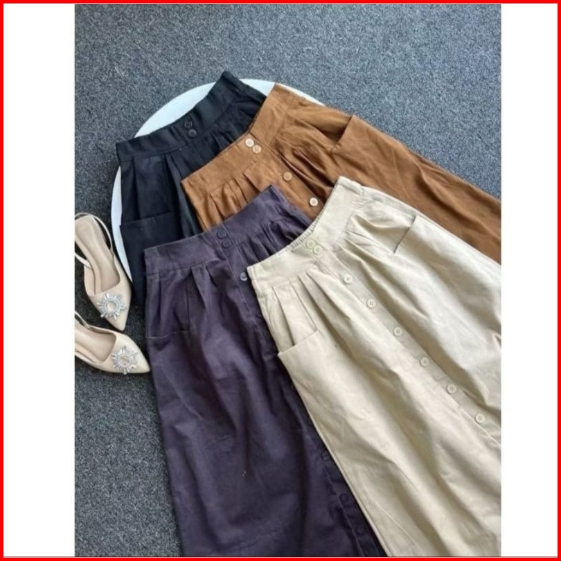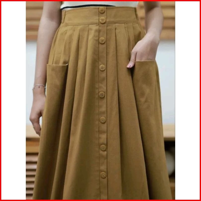 Nuna Skrit Rok Wanita Bahan Katun Twill Premium-rok Polos Korean Style-rok Jumbo