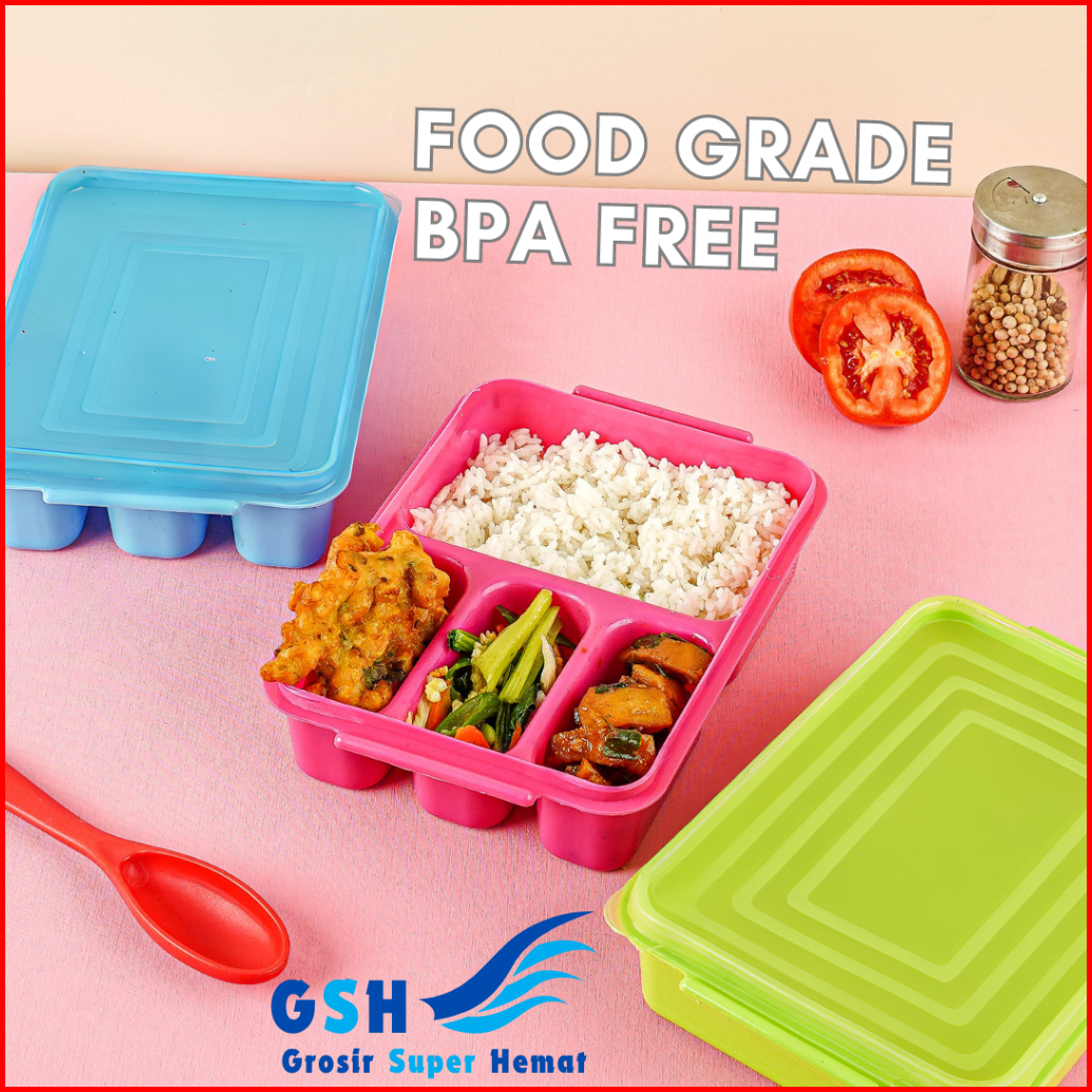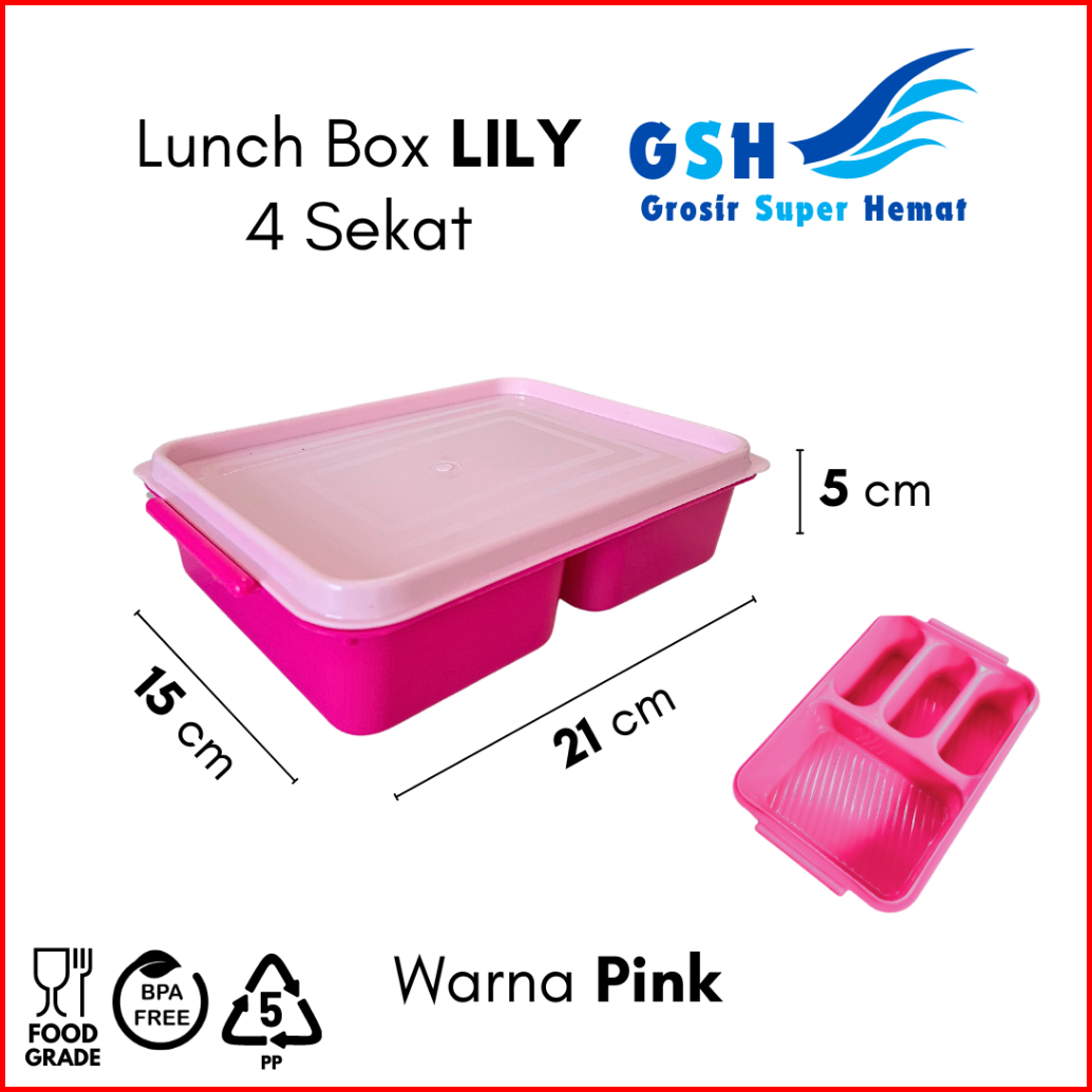 Gsh - Lunch Box Lily 4 Sekat High Way Ompreng Kotak Makan Catering Kantoran Tempat Bekal Anak Tk Sekolah Lucu Lunch Box