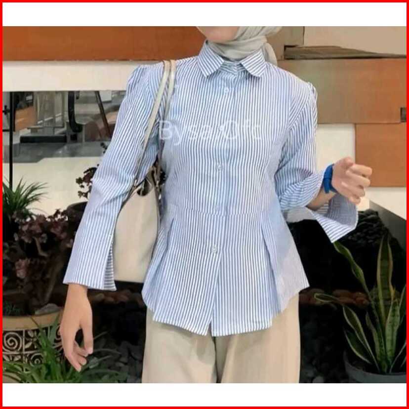 Kemeja Stripe Rempel Fit Body Wanita Casul Daily Formal Nyaman Dipakai Rempel Slime Fit - Fitted Shirt Kemeja Kerja Wani
