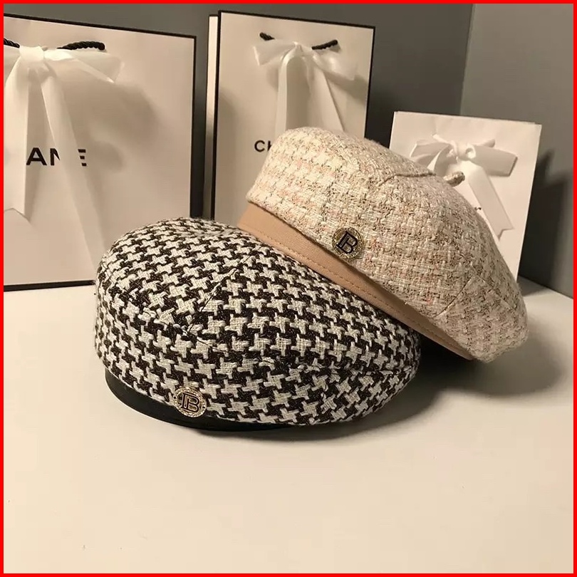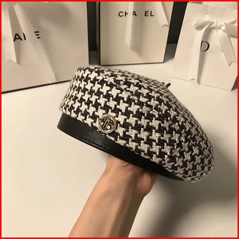 Women S Houndstooth Beret Fashion 1408 Cotton Polyester