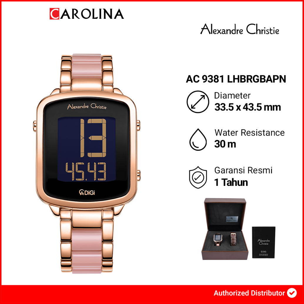 Jam Tangan Wanita Alexandre Christie Digi Ac 9381 Lhbrgbapn Black Dial Rose Dual Tone Stainless Steel