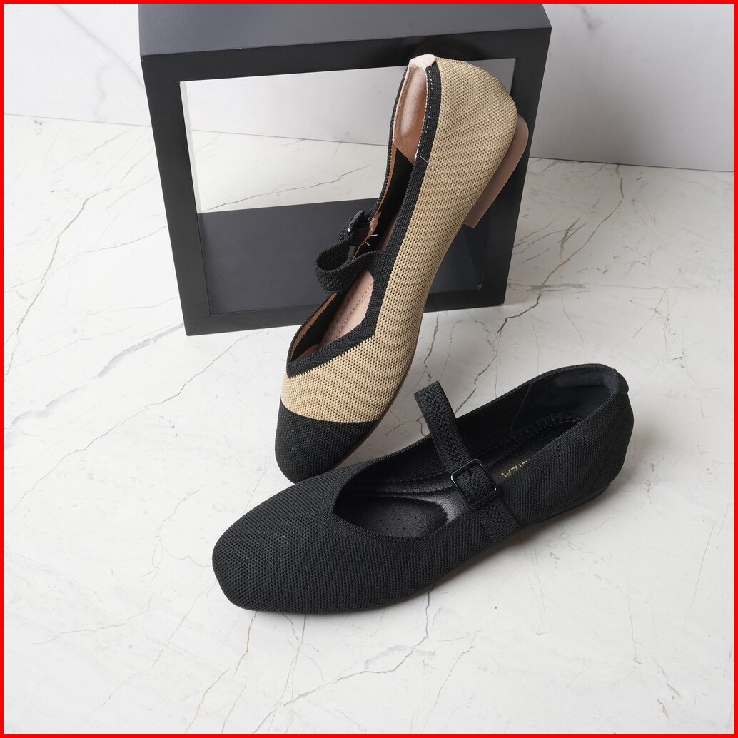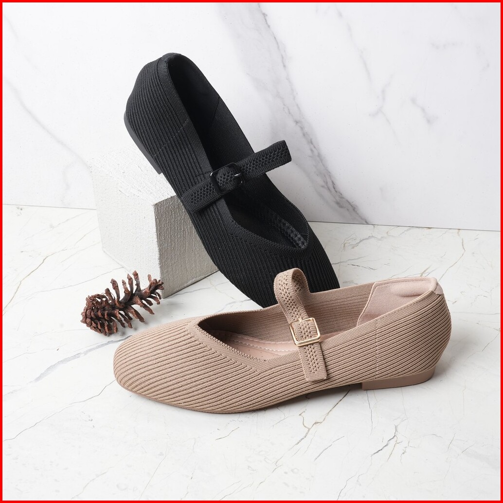 Peter Keiza Sepatu Balet Flat Wanita Bahan Kain Rajut Breathable Korean Style Koleksi Wc05