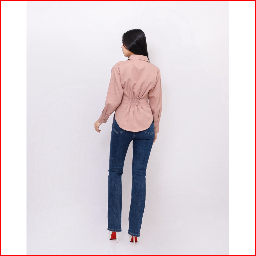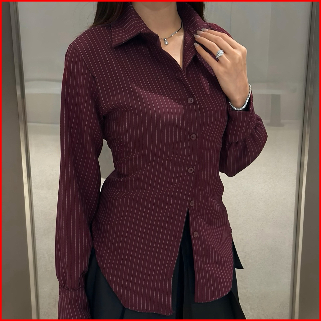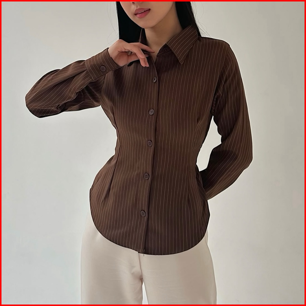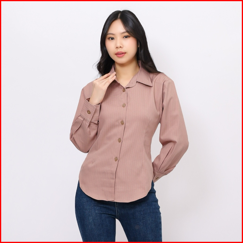 Elton Stripe Fitted Shirt - Kemeja Ngantor Salur Wanita - Atasan Semi Woll - Kemeja Fitted