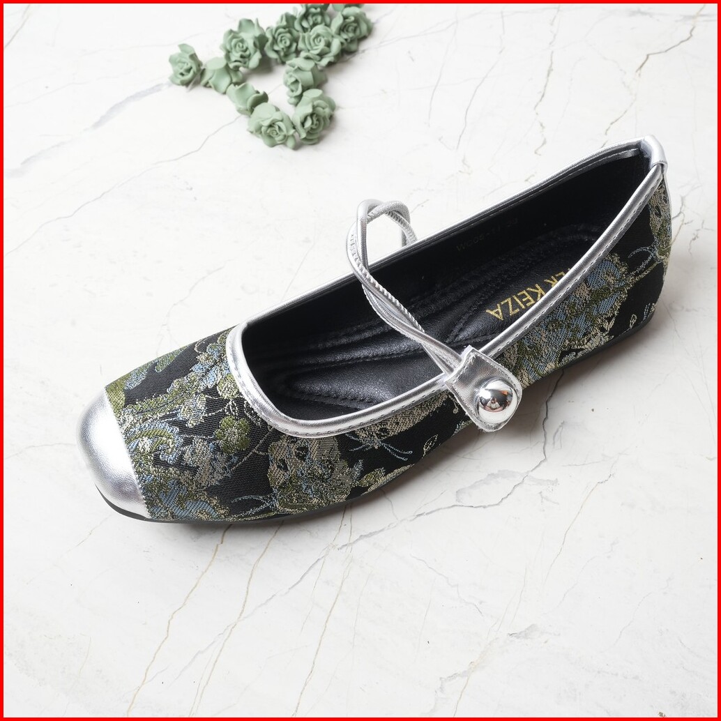 Peter Keiza Flatshoes Wanita Formal Corak Floral Dengan Tali Tengah Wc05-11
