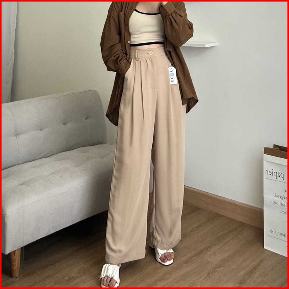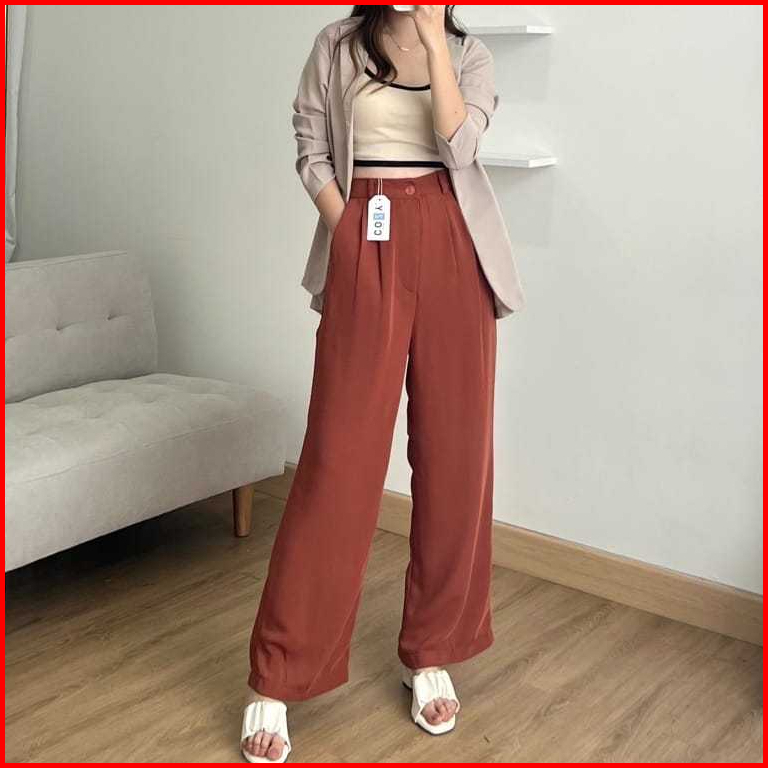 Celana Highwaist Loose Pants Trousers Celana Kerja Kantor Celana Anti Kusut Celana Kulot Wanita
