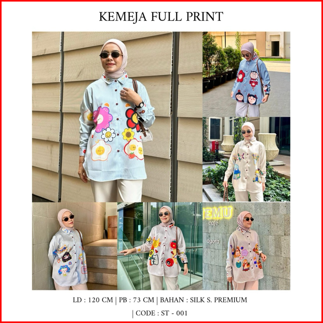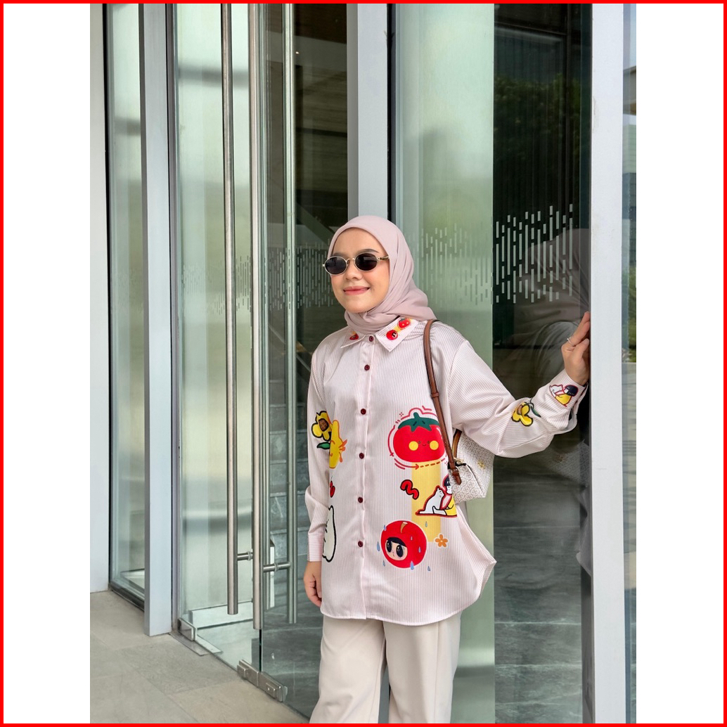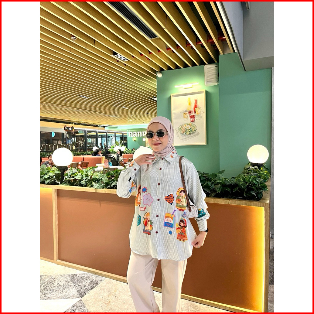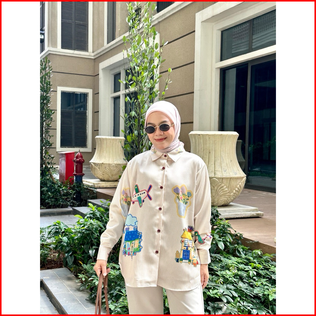 New - Kemeja Salur Full Printing Motif Sora By Abira