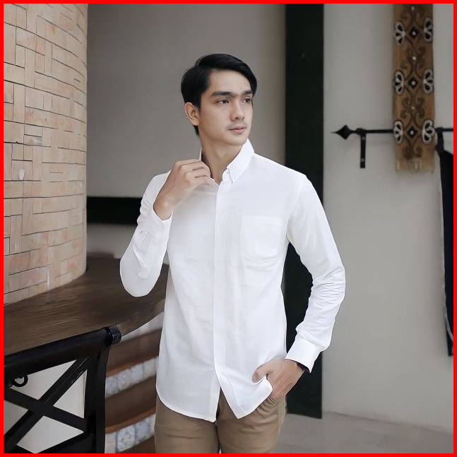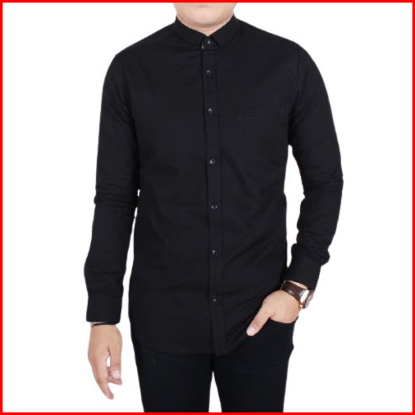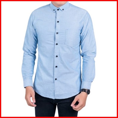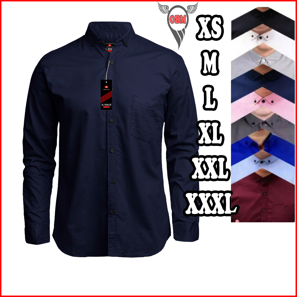 Terhitz Kemeja Panjang Pria Cowok Gatlemen Cowok Biru Navy Dongker Polos Formal Kantor Murah