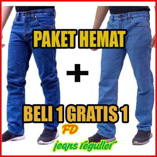 Cuci Gudang Beli 1 Gratis 1 Jeans Standar Warna Hitam Navi Blitz