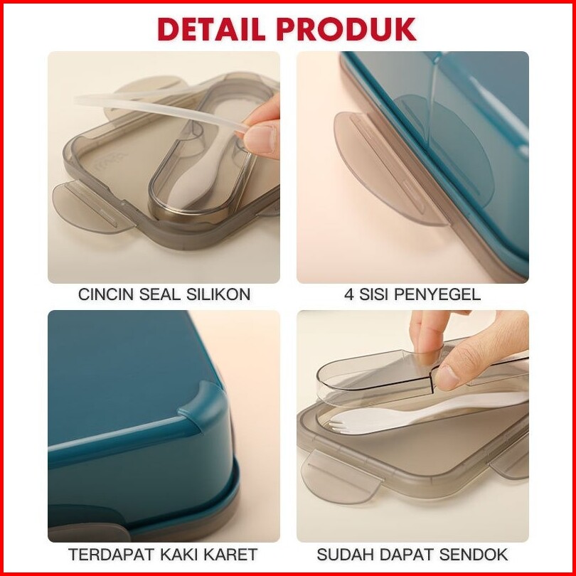 Paus Biru - Kotak Makan Siang Portabel Terisolasi Tiga Sekat Untuk Pekerja Kantor Pelajar Pemanas Microwave Garpu Dan Se