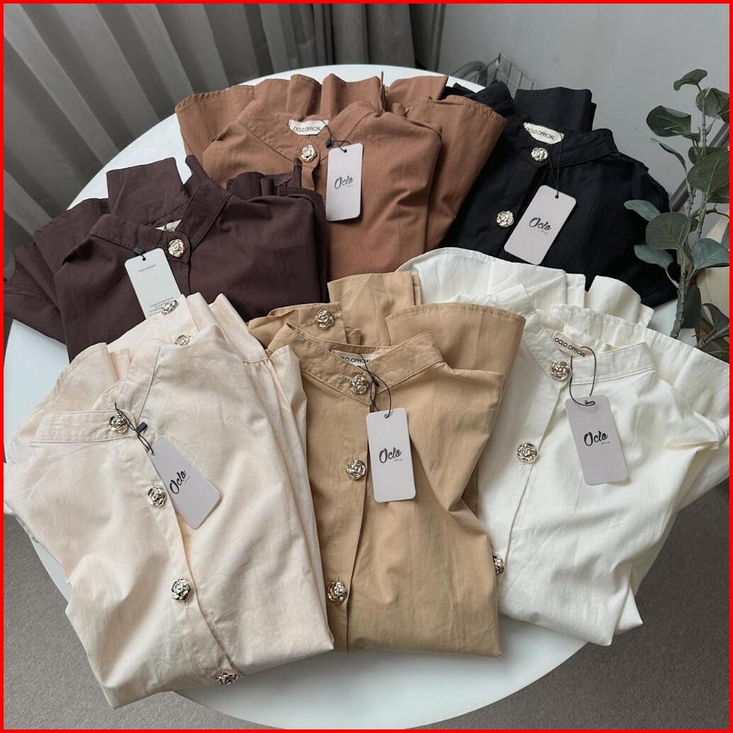 Oclo Yamada Shirt Basic Casual Dailywear Atasan Kemeja Wanita Katun Kancing Bunga Lengan Panjang Ocl01560