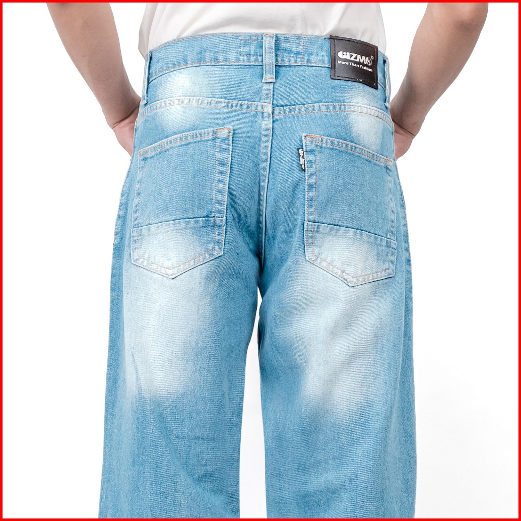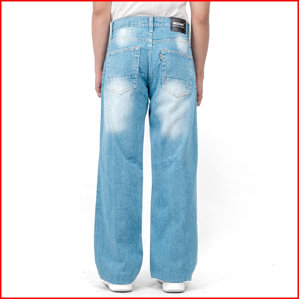 Gizmo - Celana Jeans Wide Leg Wisker Lebar Gombrong Skena Bioblitz Wisker Pria Loose Fit Jumbo Big Keren Bahan Denim