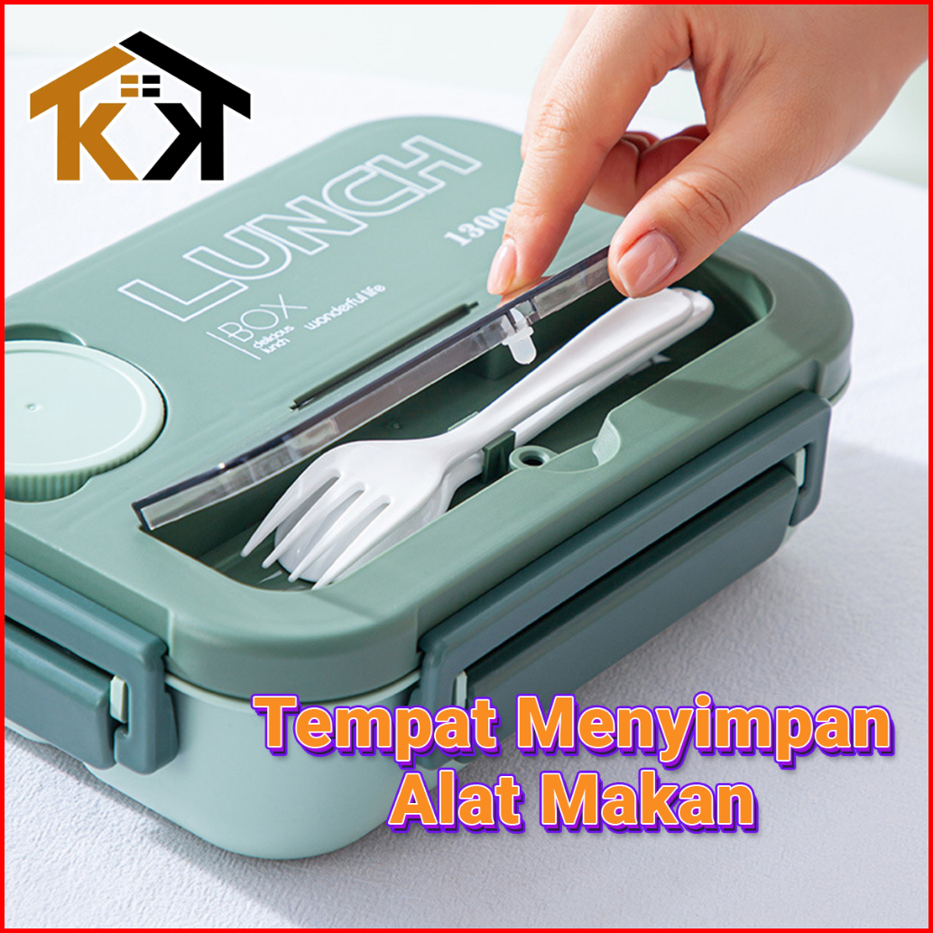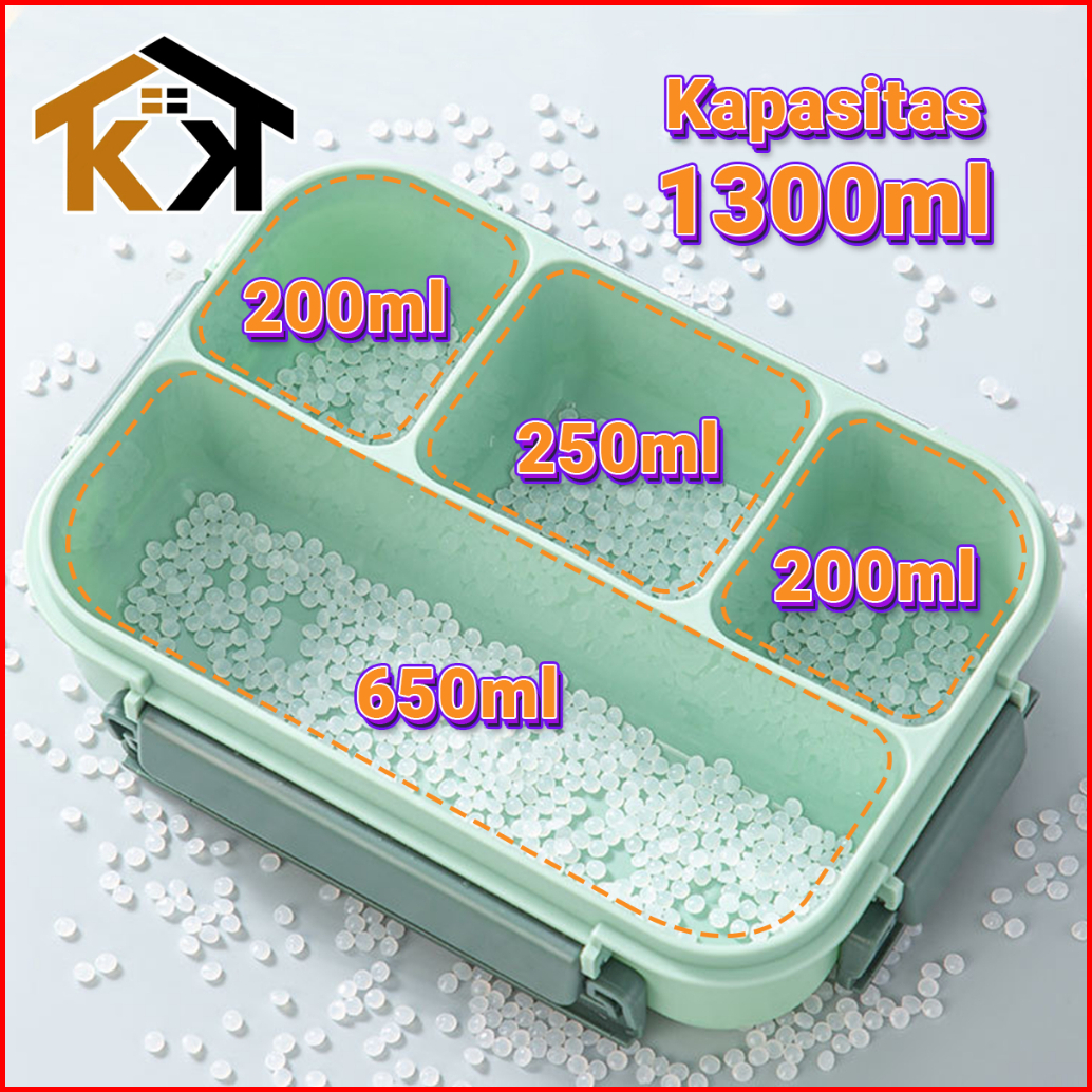 Kk Lunch Box 4 Sekat Uk 1300 Ml Model Terbaru Free Wadah Saus Set Alat Makan High Quality