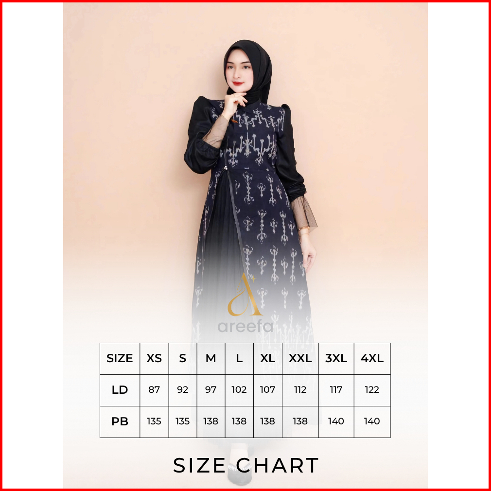 Areefa - Hana Gamis Dress Tenun Etnik Kombinasi Katun Tulle Tile Premium Kondangan Pesta Mewah Hitam