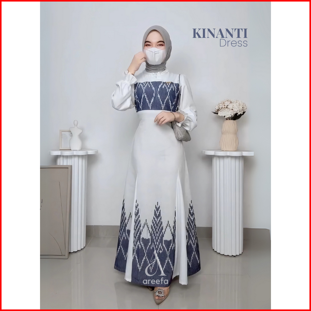 Areefa - Kinanti Dress Gamis Tenun Etnik Kombinasi Katun Premium Remaja Wanita Kondanan Mewah Hitam