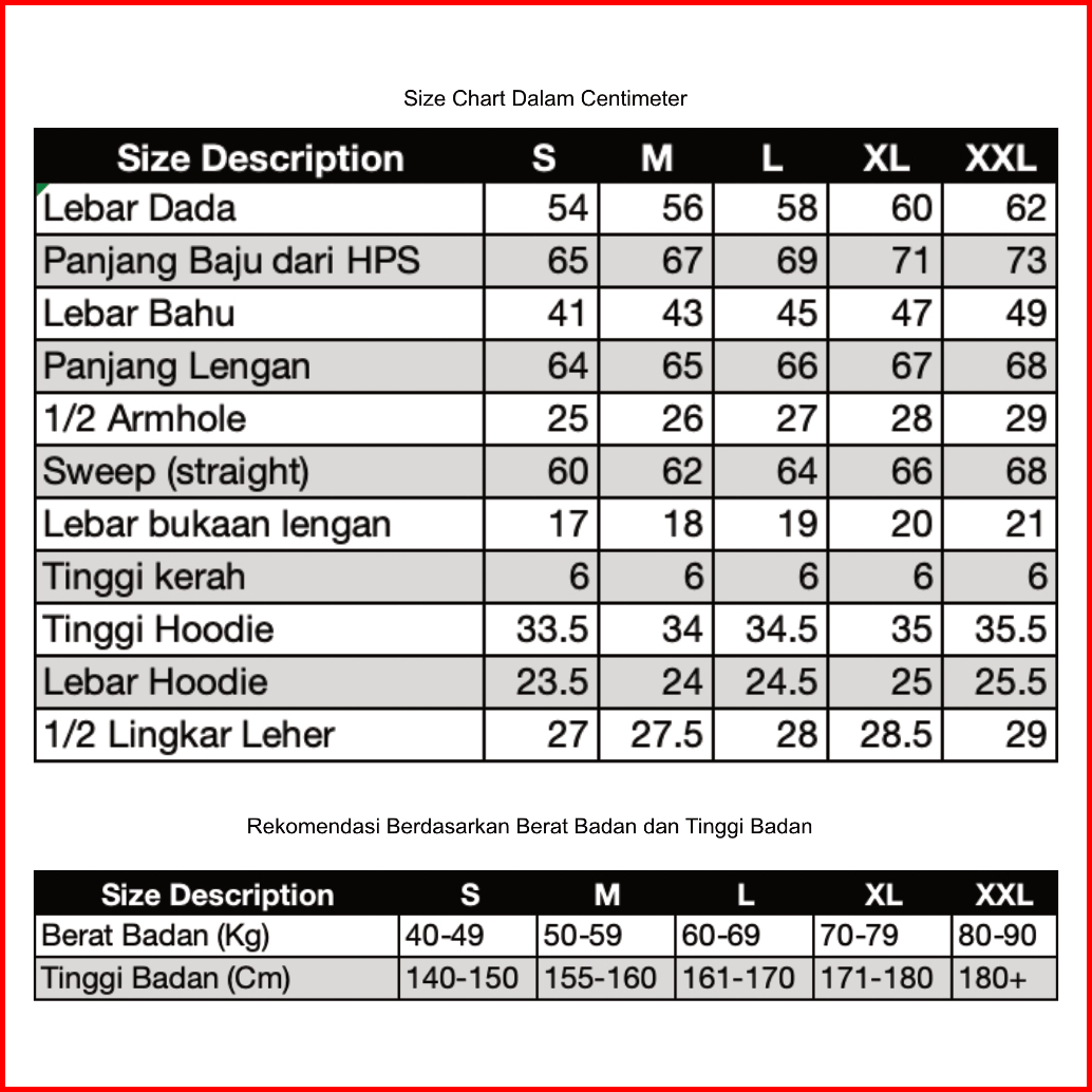 S, M, L, XL, XXL