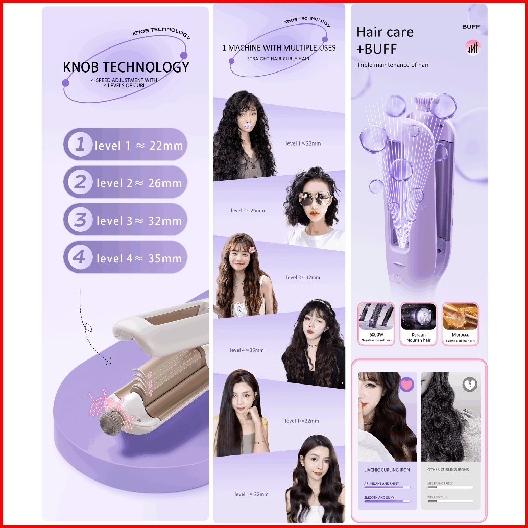 Livchic Lc210 Catokan Rambut Curly Catokan 90w 22 26 32 36mm 4-size Adjustable Curling Iron
