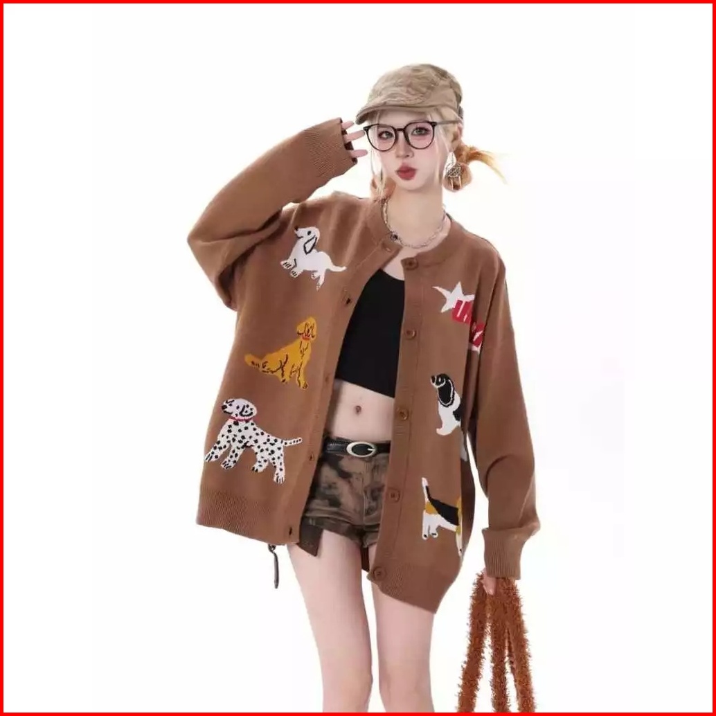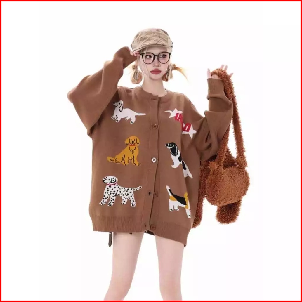 Sweater Cardie Wanita - Animals Cardigan Oversize Wanita Korean Style