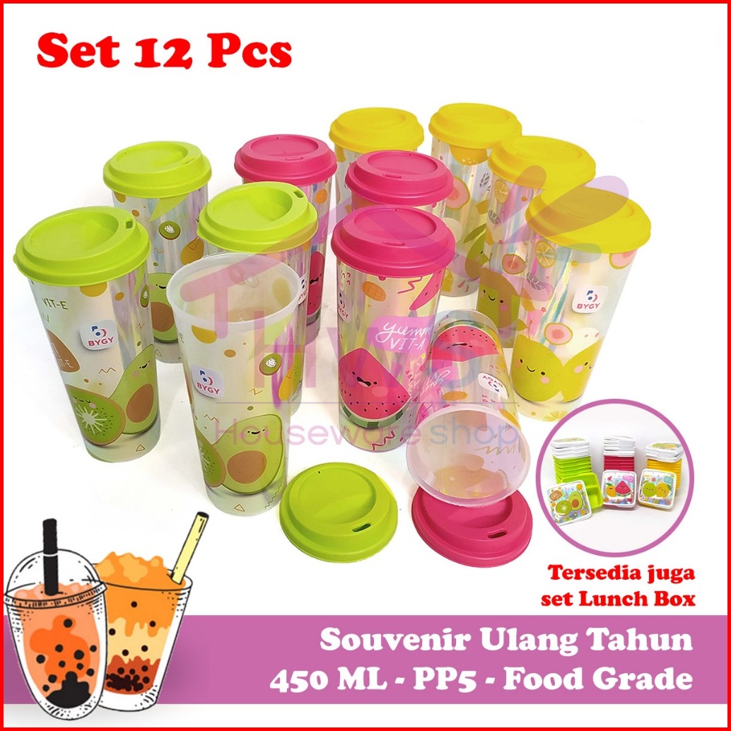 Lusin Gelas Tumbler Buah Fruitamin 450ml - Souvenir Ulang Tahun Isi 12 Pcs